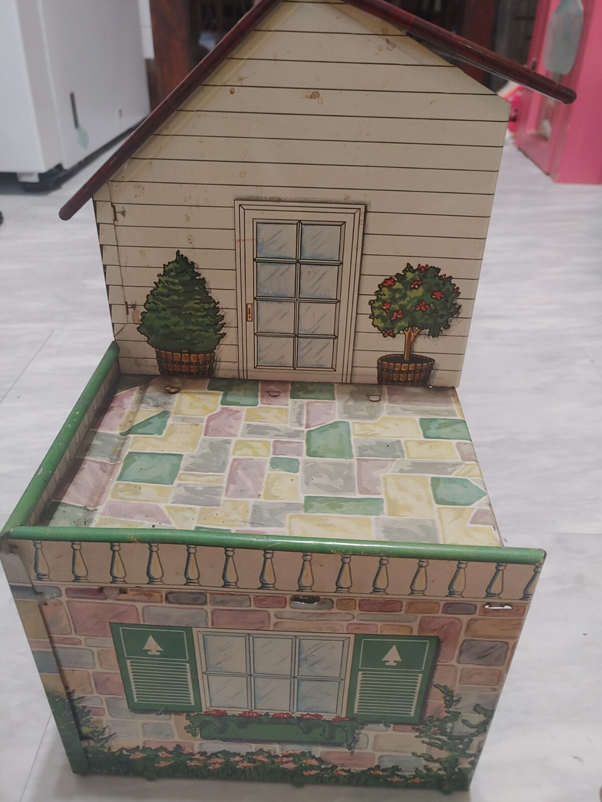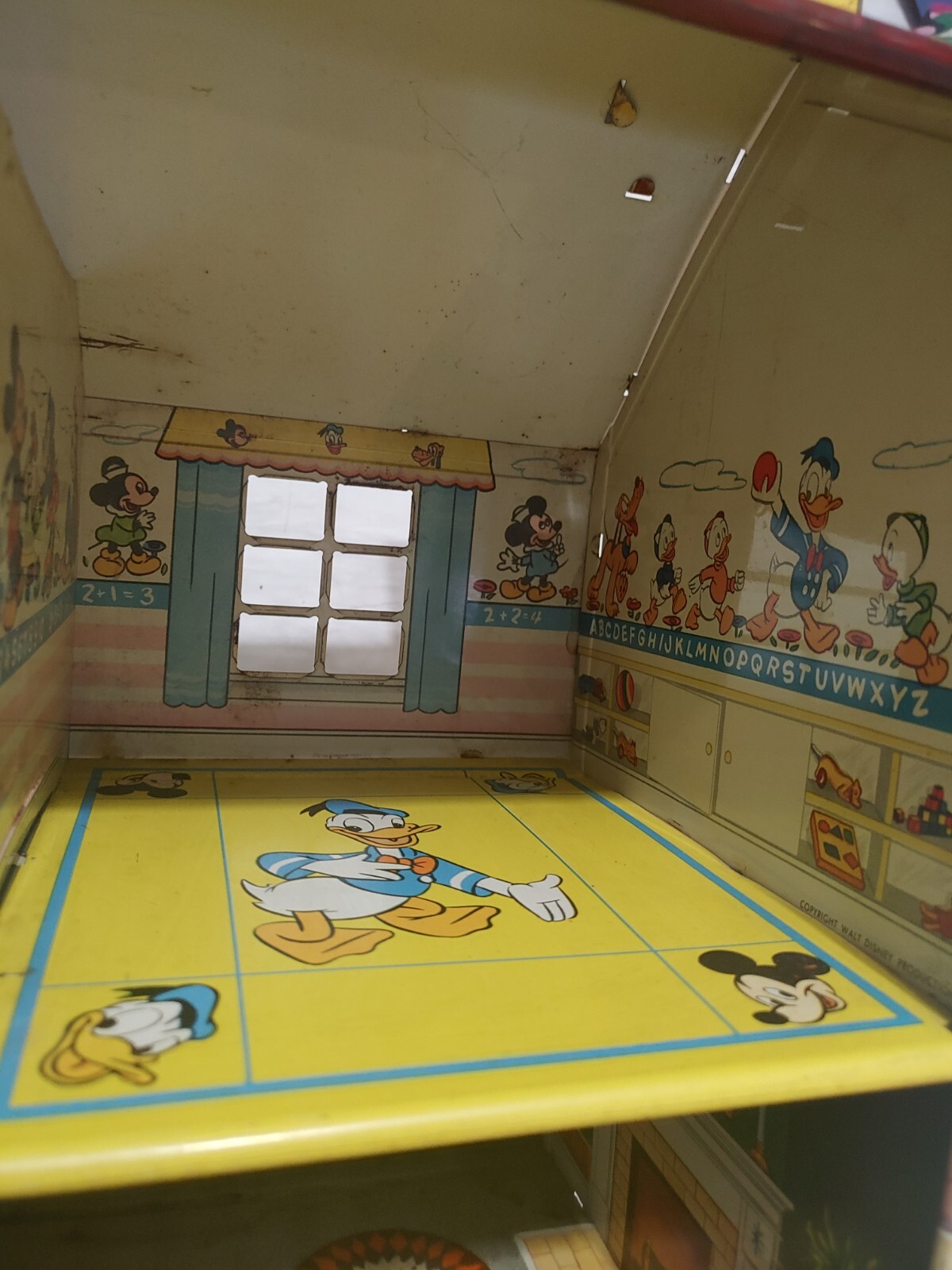 Vtg Marx Litho Tin Doll House Donald Duck Mickey Room Please See Pix 17 X 25 X 8