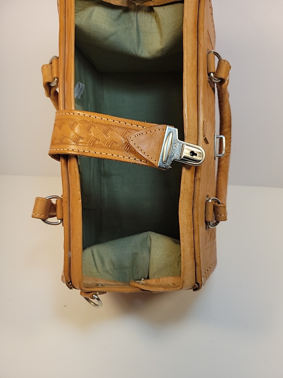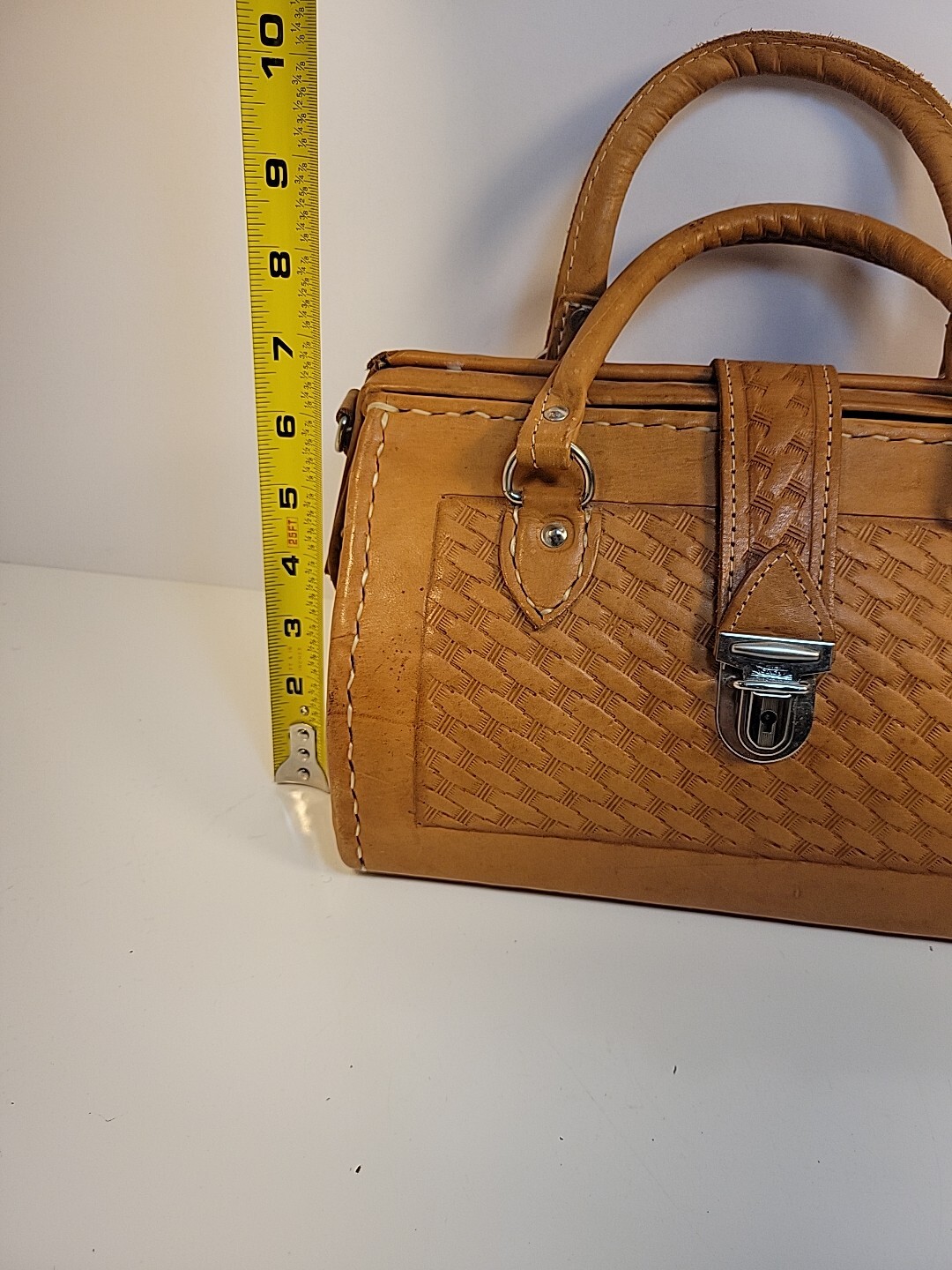 VTG MR Canoa Industria Argentina Hand Tooled Leather Purse Suitcase Doctor Bag