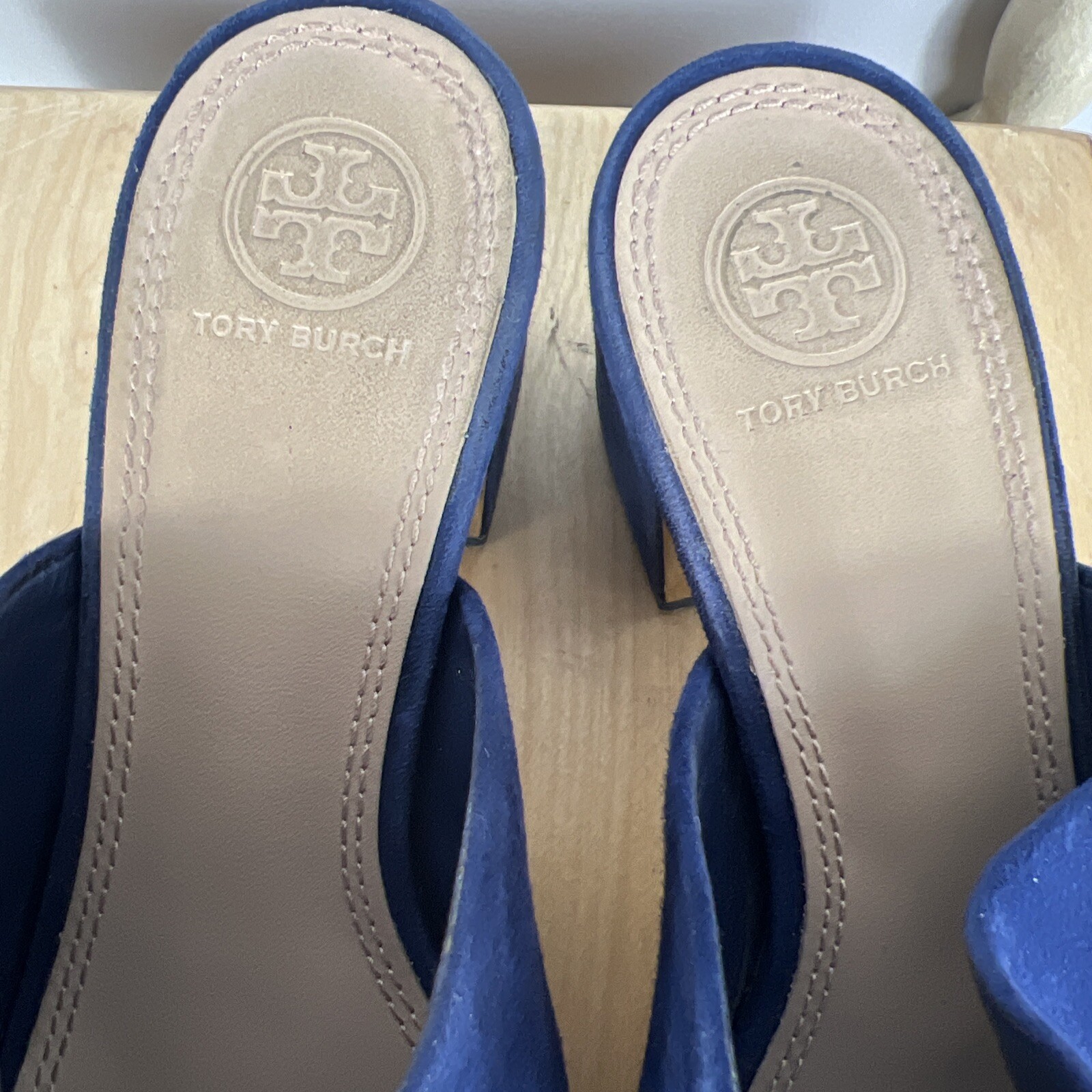 как выглядит Tory Burch Salina s Blue Suede Mules/Slides size 8M EUC фото