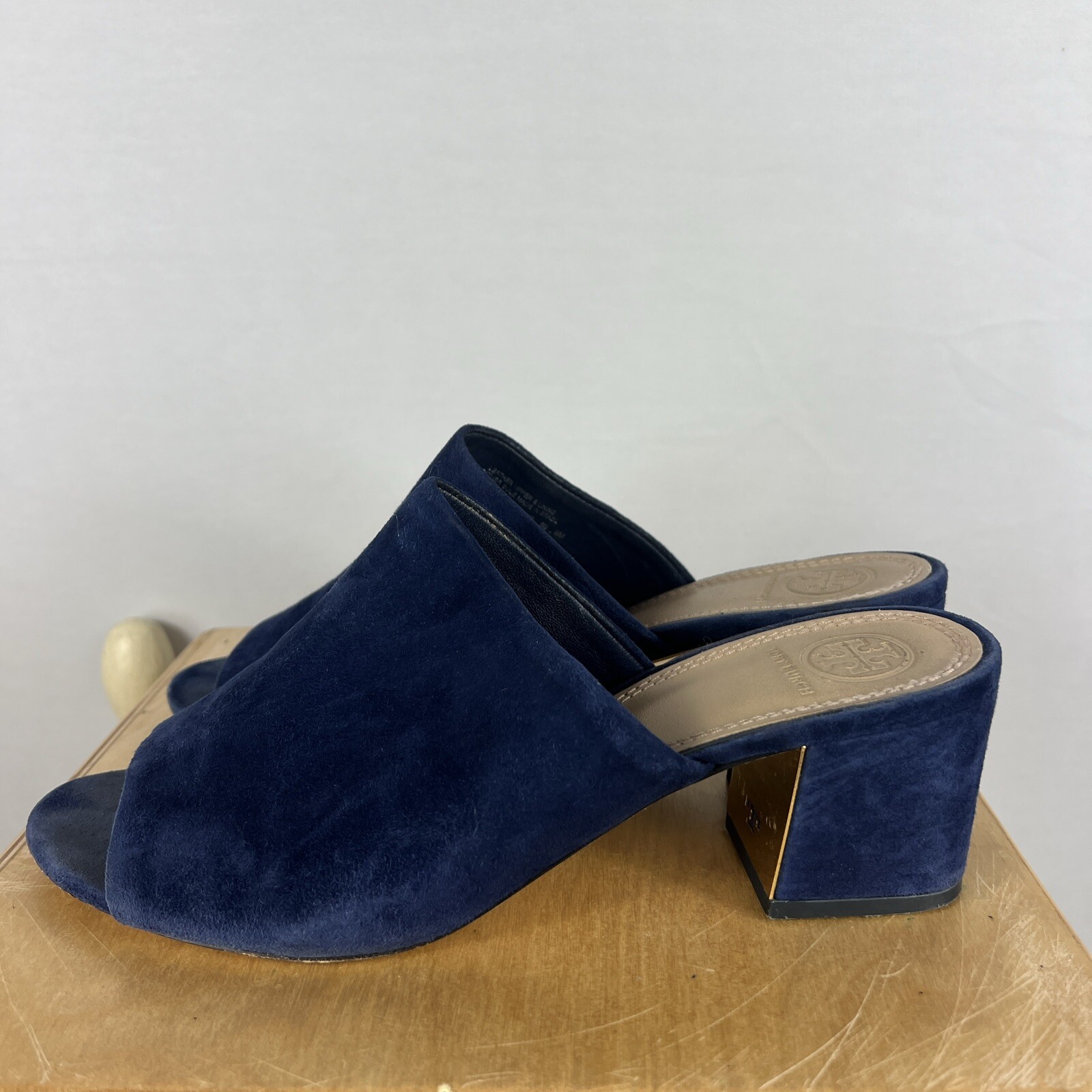 Tory Burch Salina s Blue Suede Mules/Slides size 8M EUC