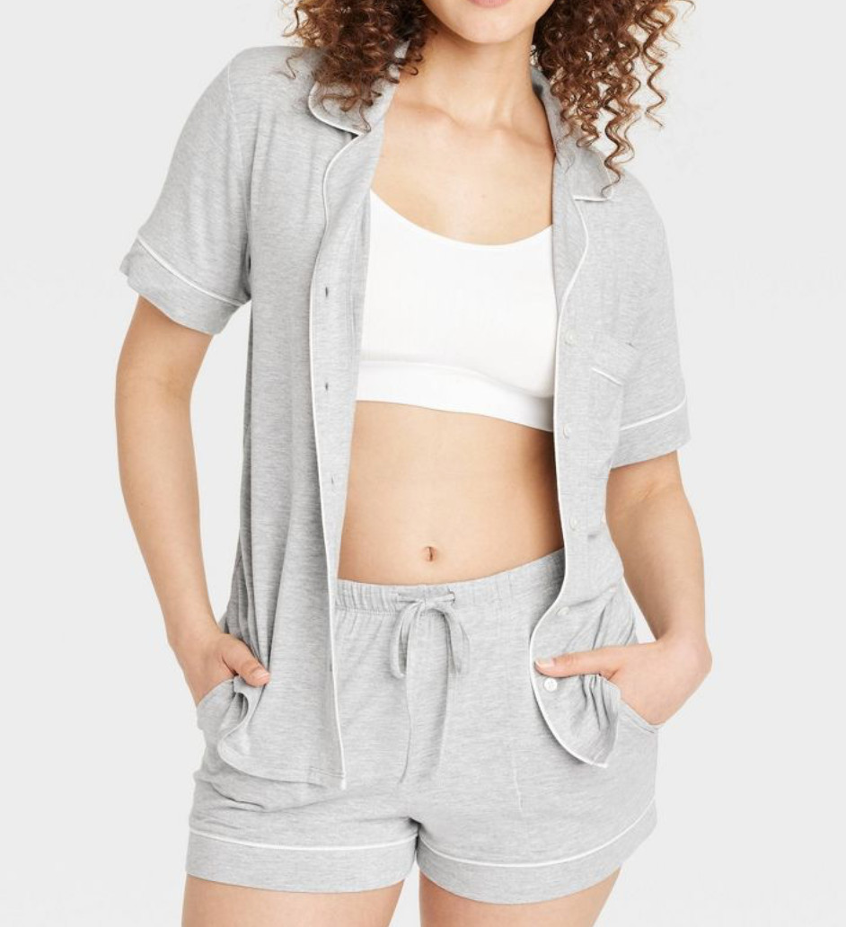 Stars Above Women's Gray Cloud Knit Pajama Top Shorts Set Medium NEW
