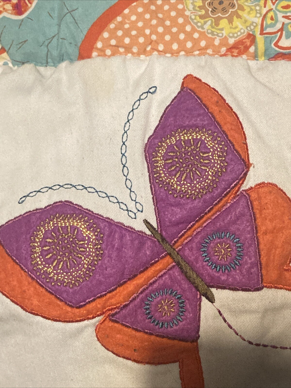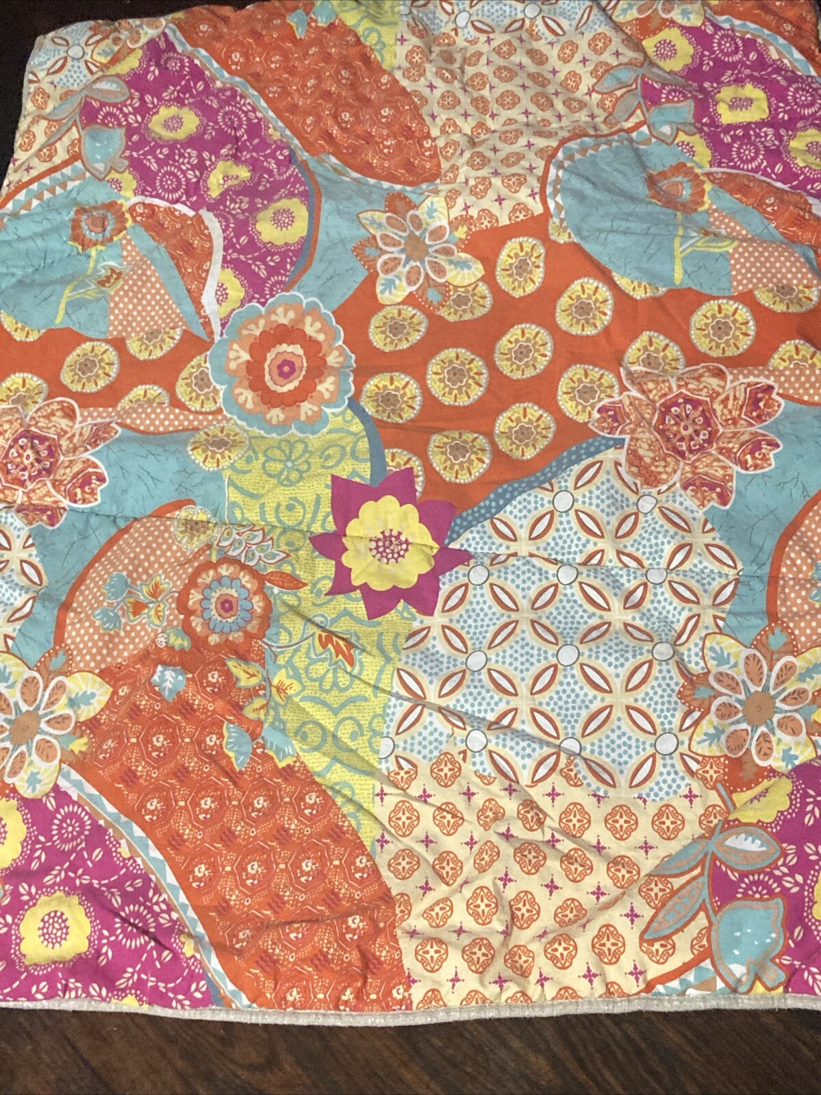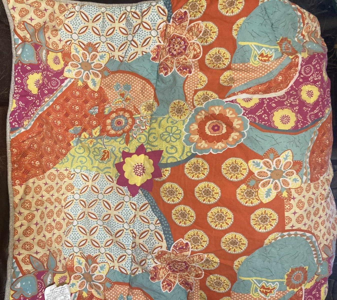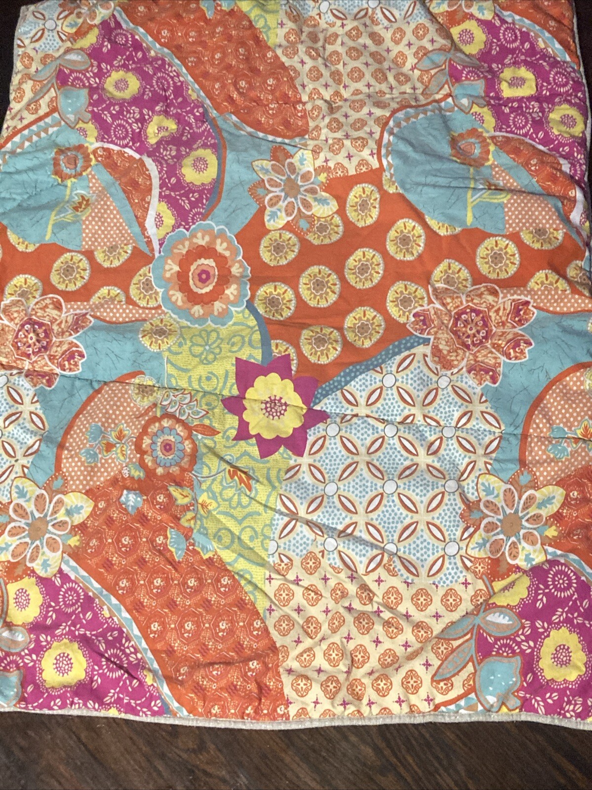 Colors in Comforter: Orange, Teal, Yellow, Red, Fushia
