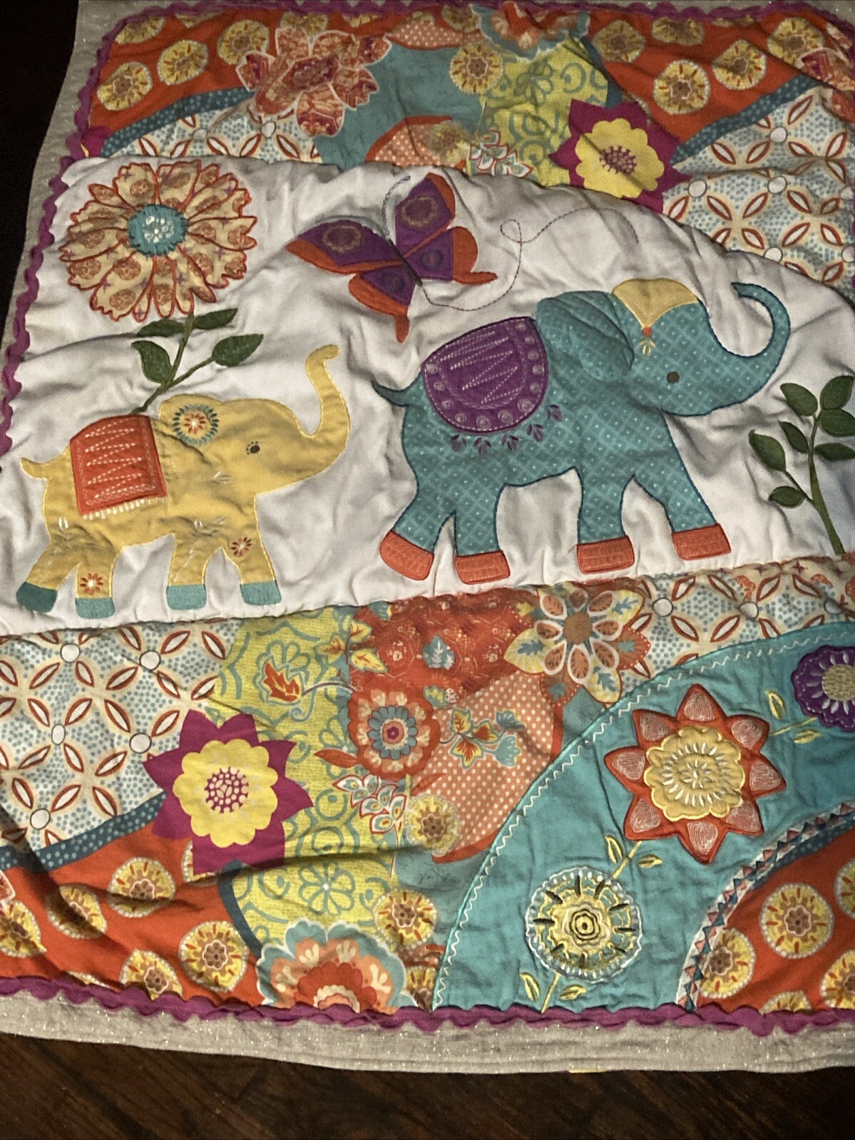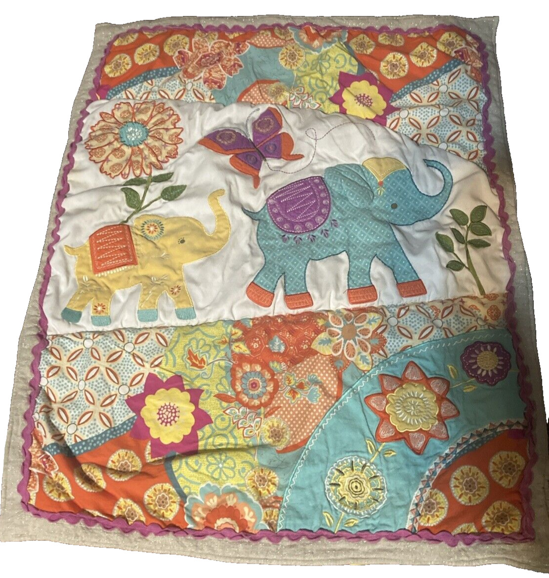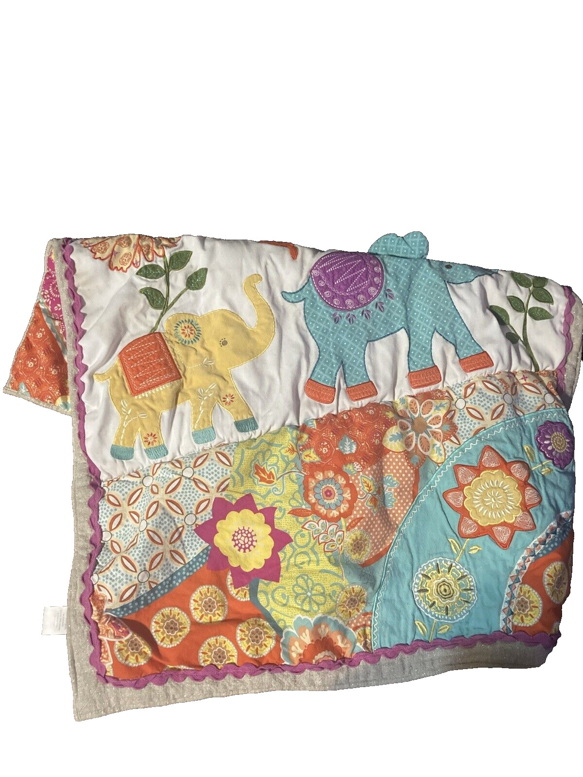 Levtex Zahara Elephant Reversible Nursery Baby Blanket Quilt Crib Comforter EUC