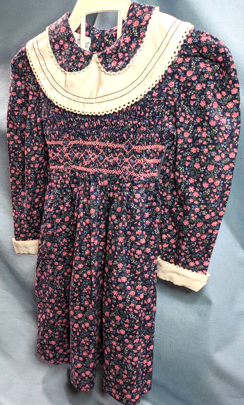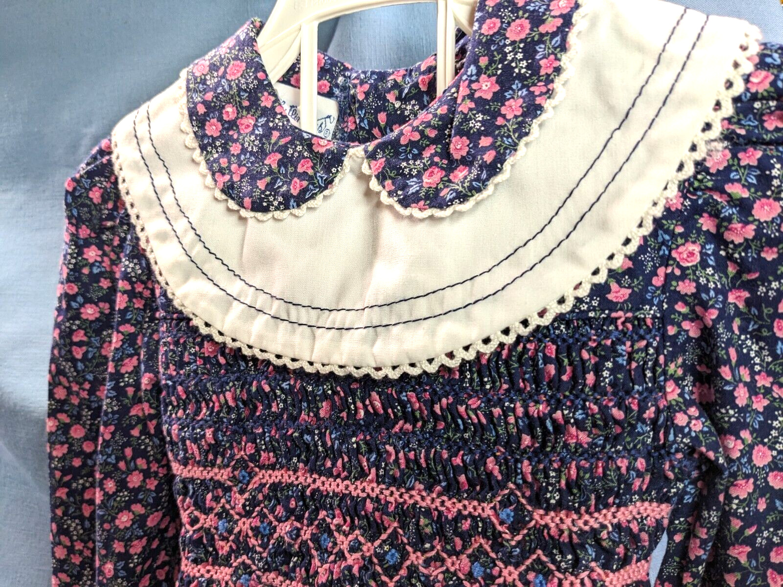 Vintage POLLY FLINDERS Smocked Pink Floral Dress, Girl's Size 5