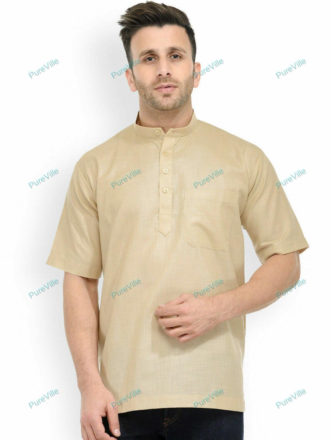 Mens Kurta Traditional Mens Wear Golden Cotton Solid Kurta Half Sleeve S 7XL