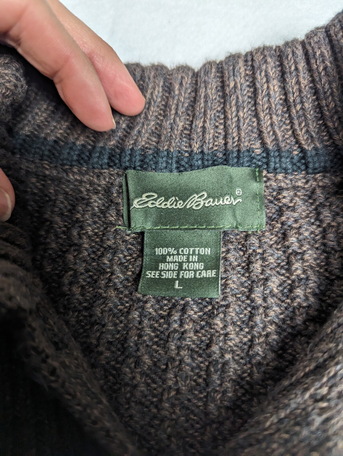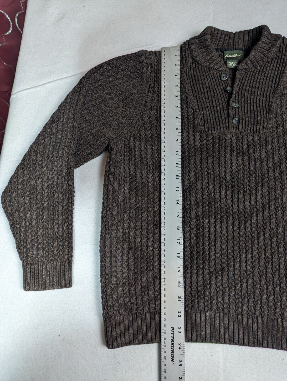 Eddie Bauer Pullover Henley Sweater Men's L Brown Cotton Cable Knit