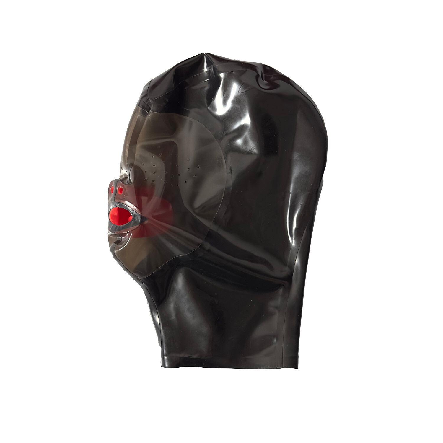 Latex Mask Eyes Mesh Hood with Red Teeth Gag and Nasal Tubes Fetish BDSM Cosplay