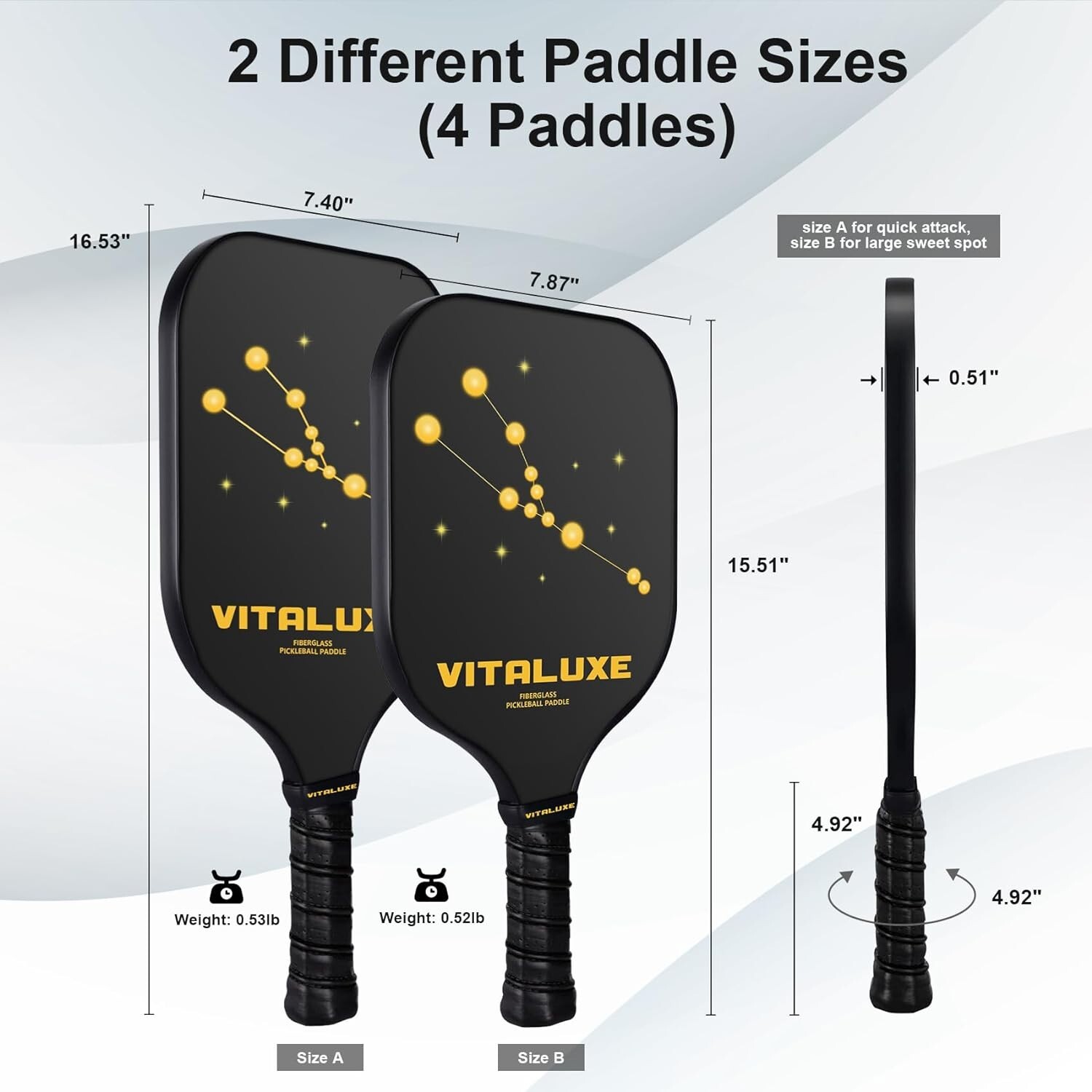 Pickleball Paddle Set of 4, Premium Fiberglass Pickleball Paddles w Carrying Bag