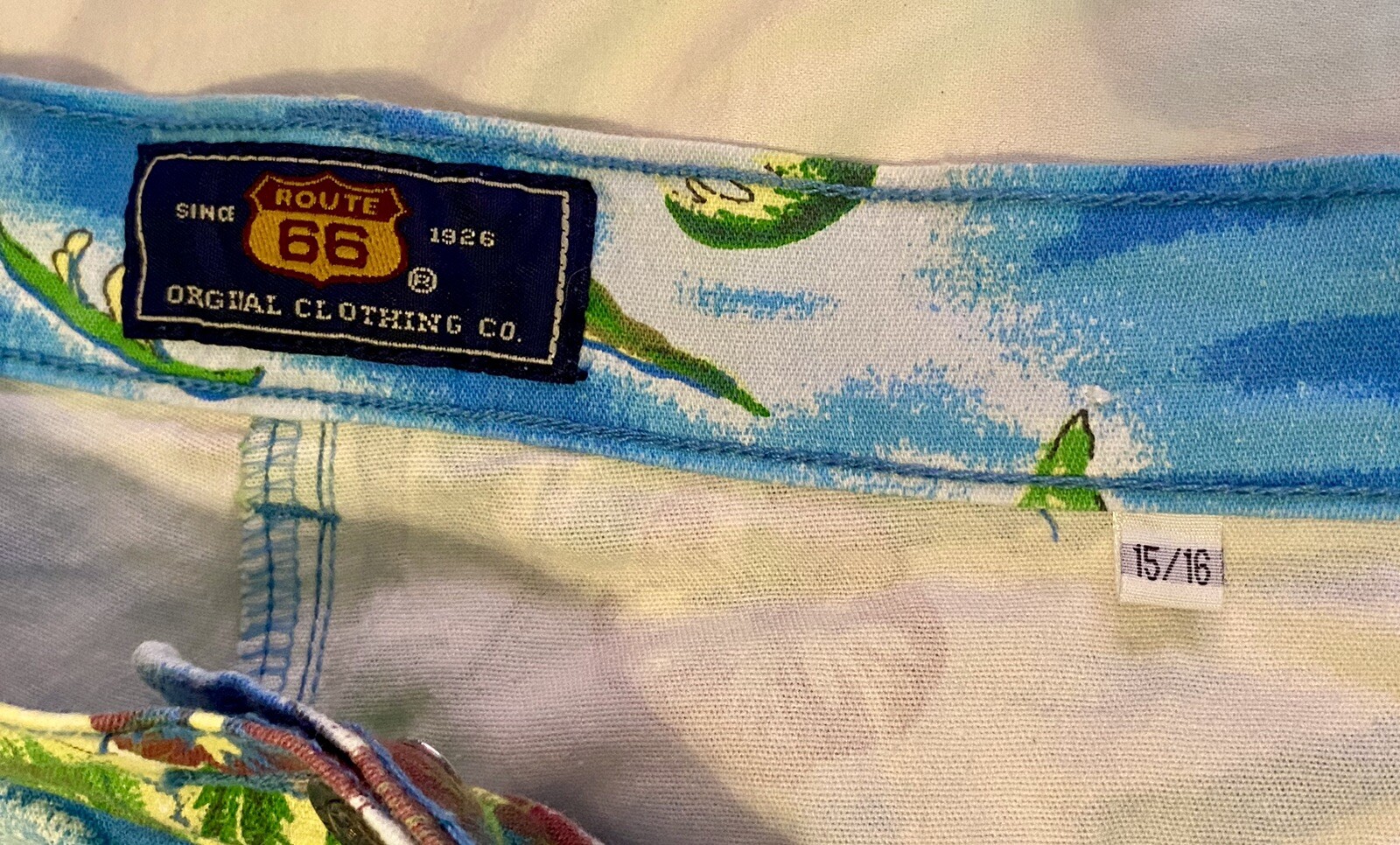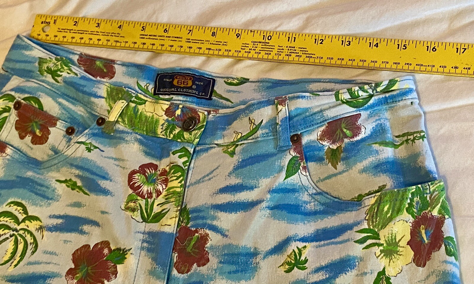 Vintage Route 66 Women s Pants Size 15/16 Blue Tropical Floral High Rise Stretch