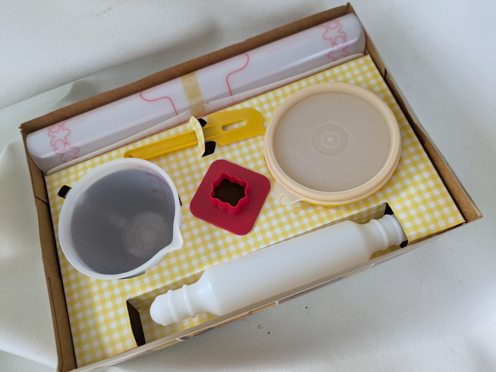 как выглядит 1979 Tupperware Mini Mix It Set Baking Children Toys Complete Box NEW фото