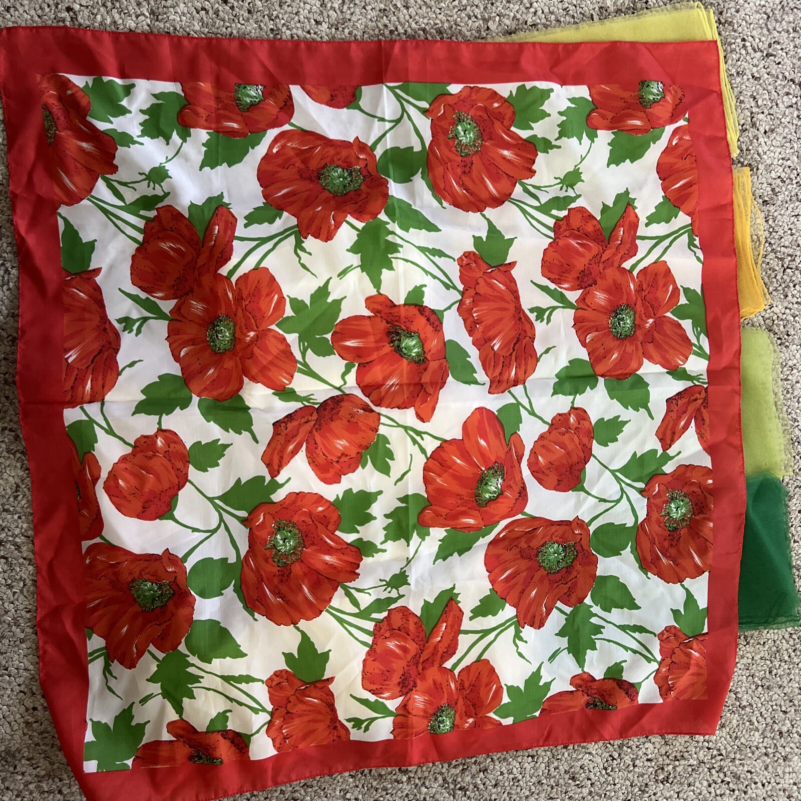 10 Vintage Scarves 4 Nylon Chiffon 37778 Liz Sinclair Red Floral Italy Scarf