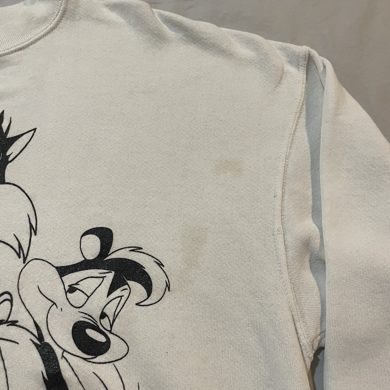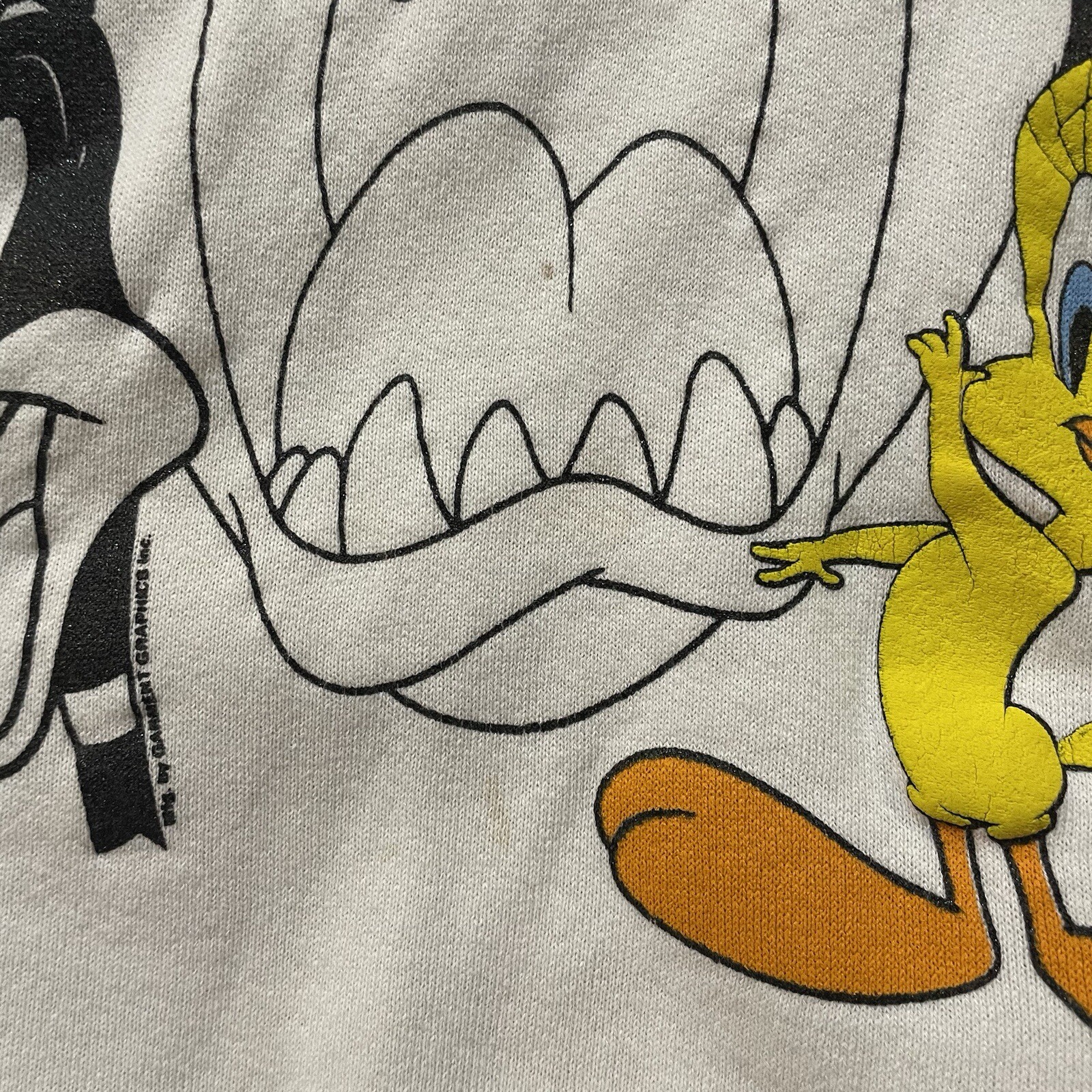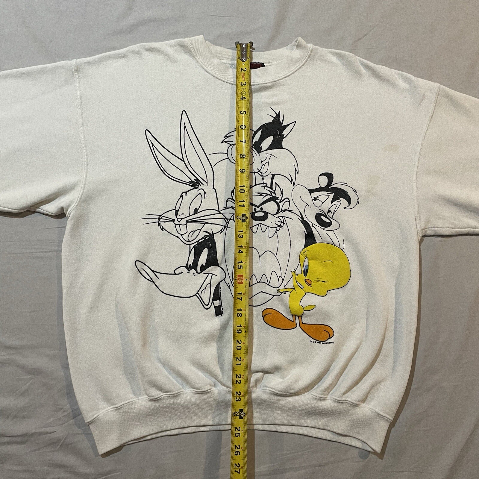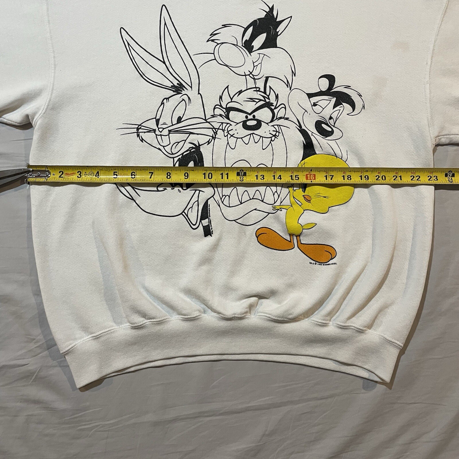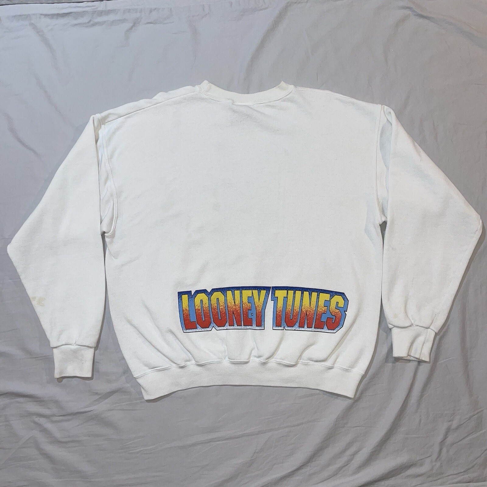Vintage Looney Tunes Crewneck Sweatshirt Sz Large White 1995 Tweety Back Hit 90s