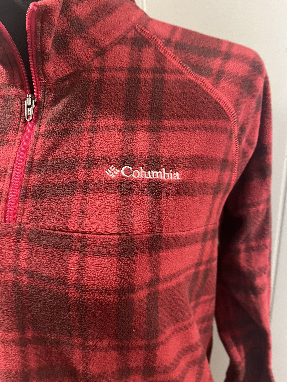 как выглядит Columbia Youth XL 18-20 1/4 Zip Pullover Red Plaid Fleece Polyester фото