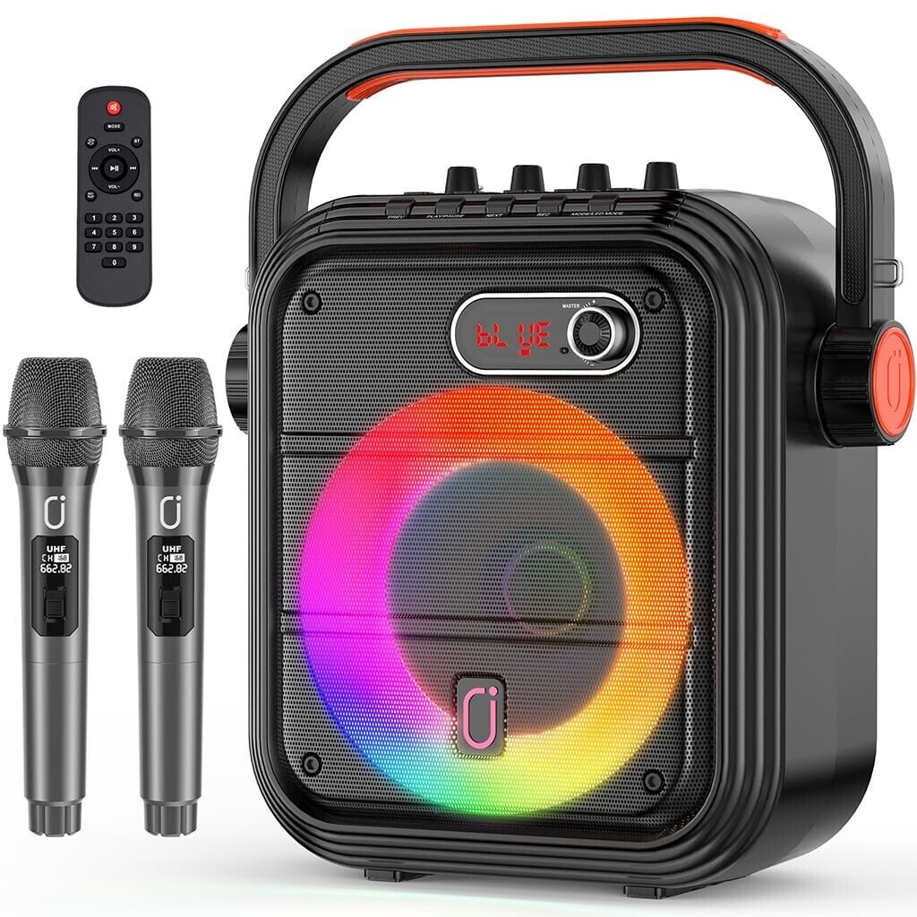 JYX Karaoke Machine with Two Wireless Microphones, Portable Bluetooth Speaker