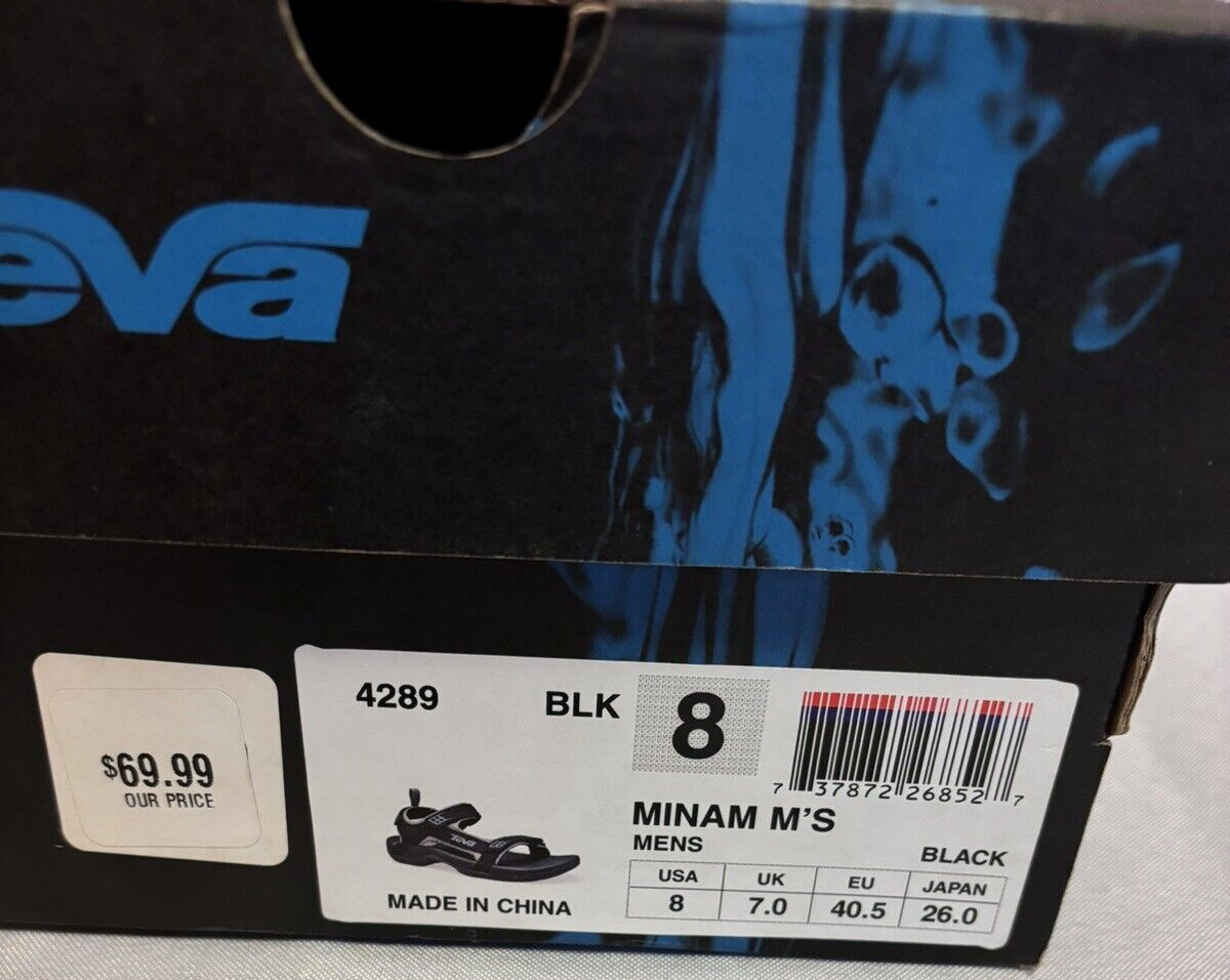 Teva Men's Size 8 Minam Black Hiking Sandals 4289 Pre-Owned with Original Box