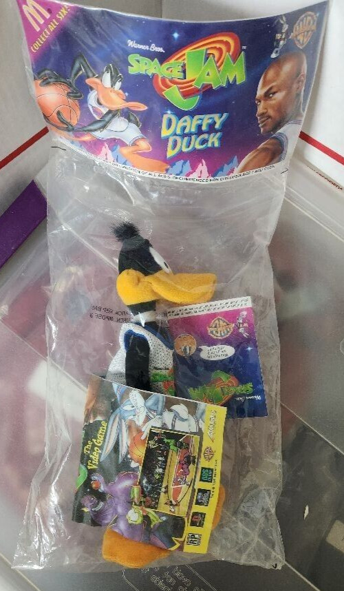Vintage 1996 Space Jam Daffy Duck Plush Toy McDonalds Looney Tunes Factory Bag
