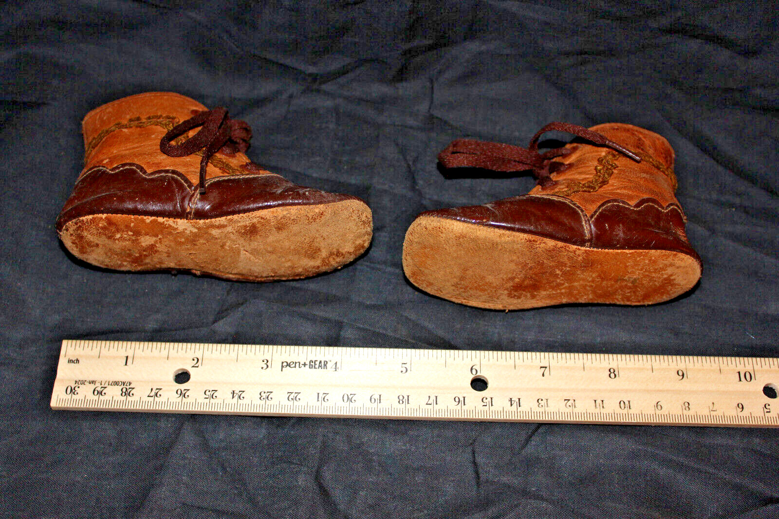 Antique Victorian Tan and brown Leather Shoes Child Toddler . 4