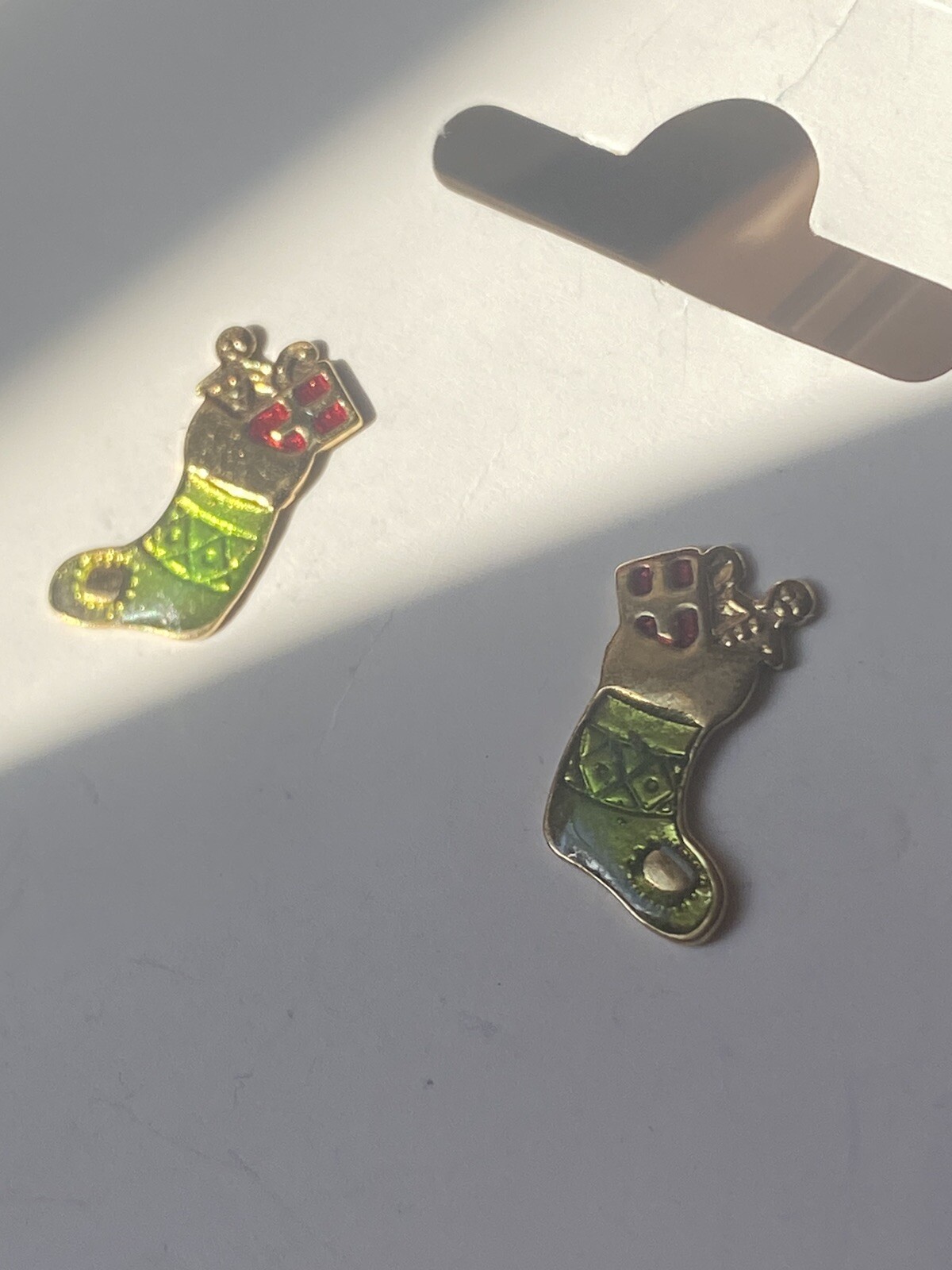 как выглядит Vintage Avon Christmas Stocking Gold Tone And Enamel Stud Earrings фото