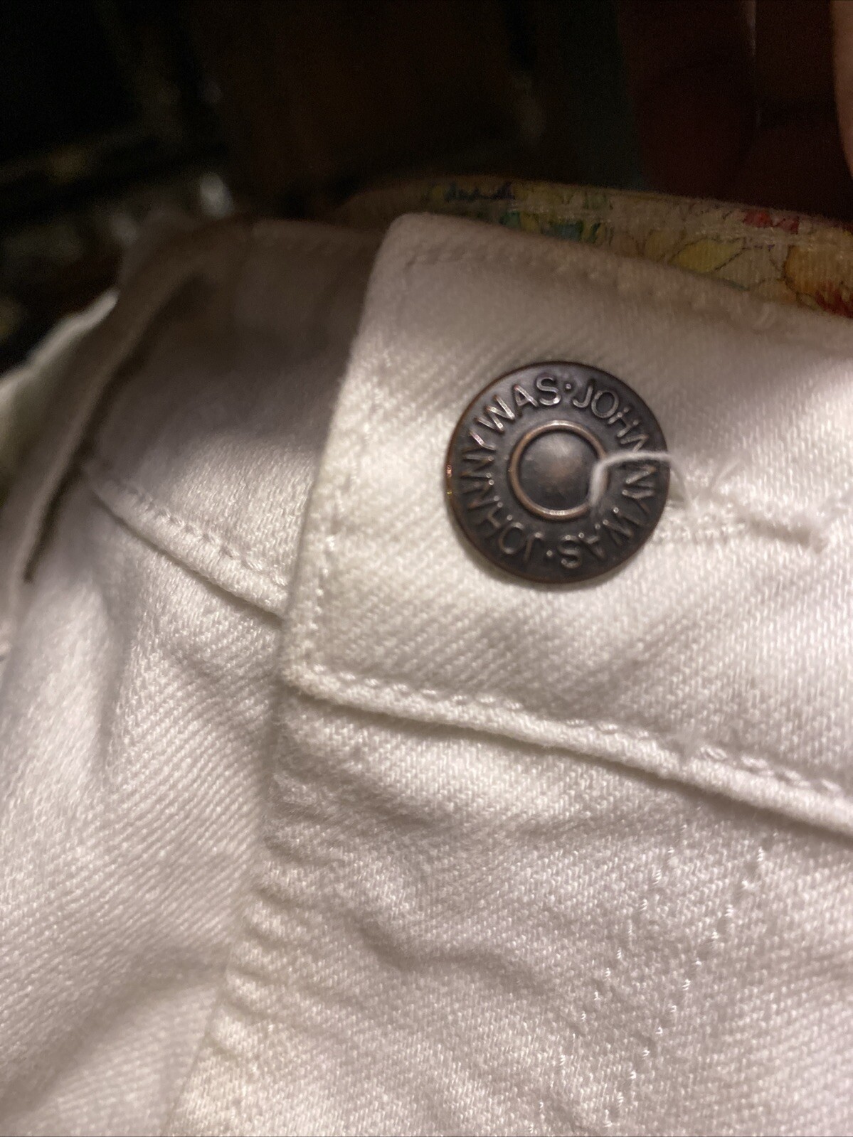 как выглядит Johnny Was The Cropped Baby Boot white jean Butterfly embroidered pocket sz 28 фото