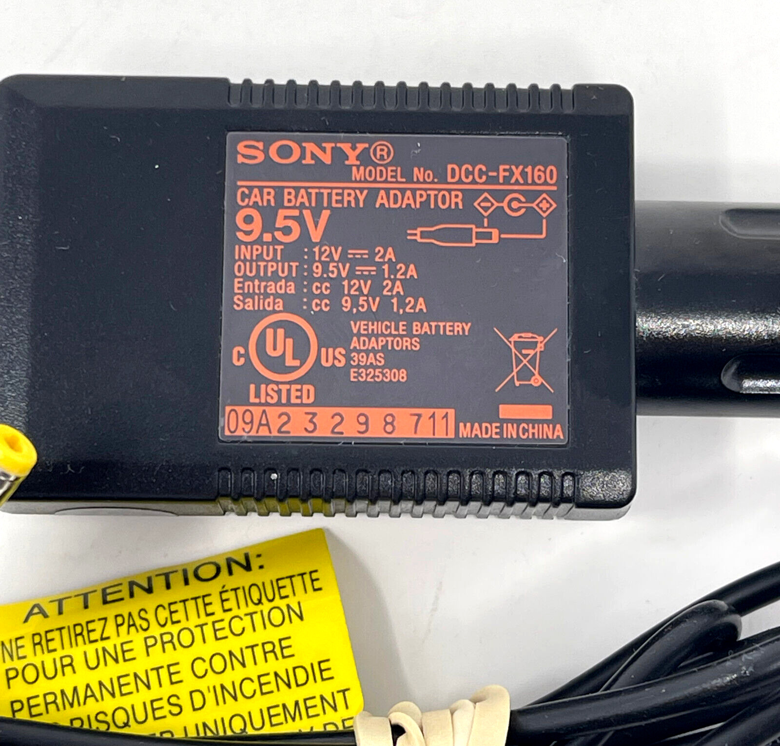Sony DCC-FX160 9.5v Car Battery Adaptor Power Charger OEM Genuine Original Works