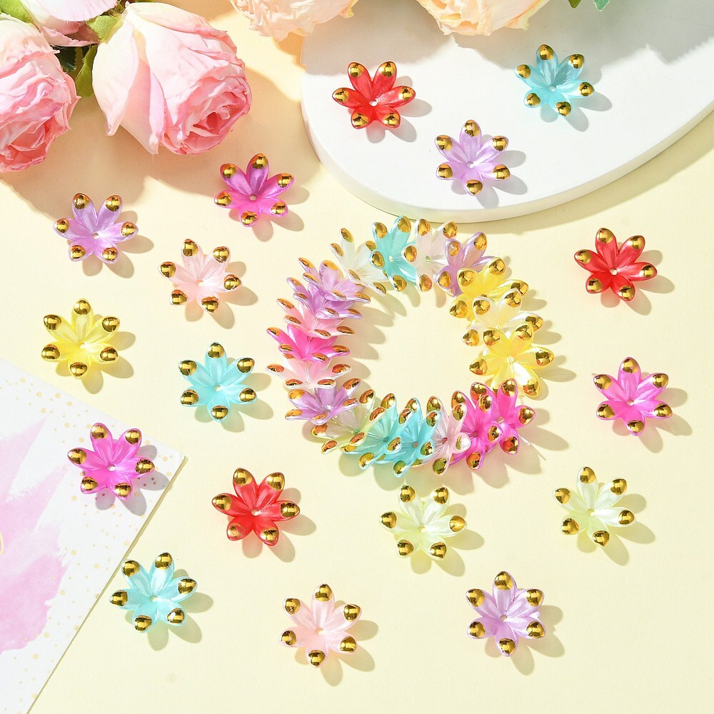 100Pcs Acrylic Flower Bead Caps 6 Petal Flower Beads Floral Beads Jewelry Making