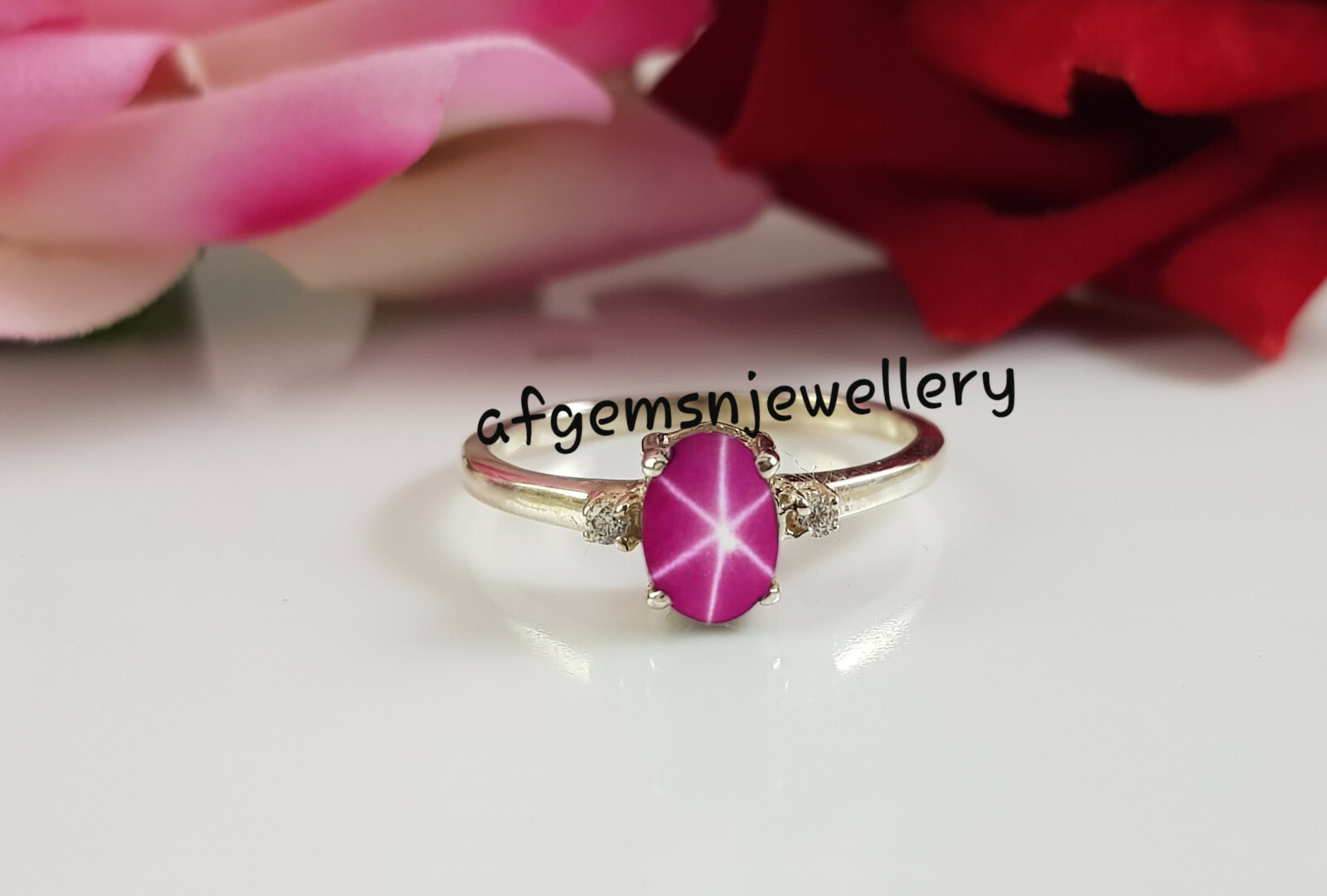 Unique Pink Star Ring 7x5mm Ruby Star Ring in 925 Sterling Silver Ring