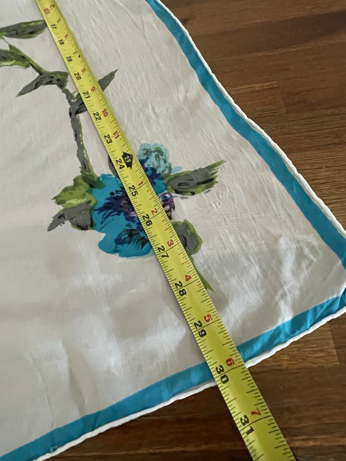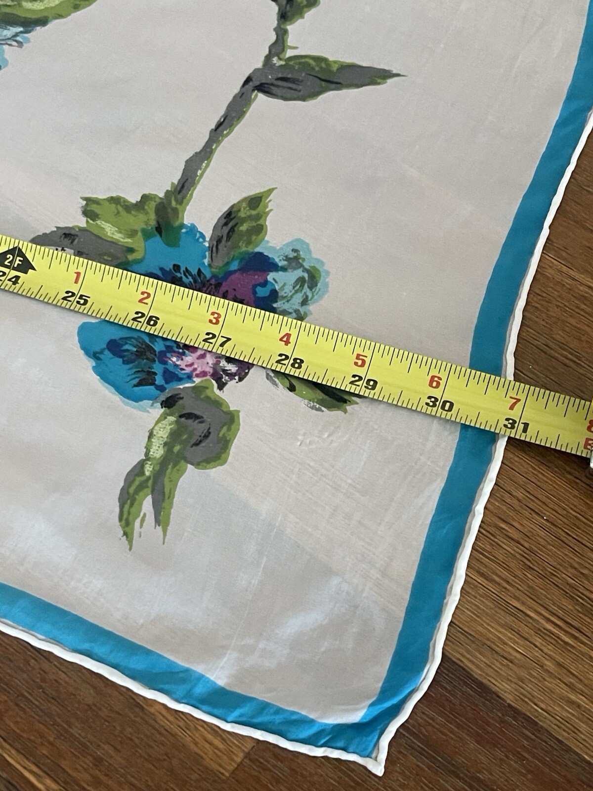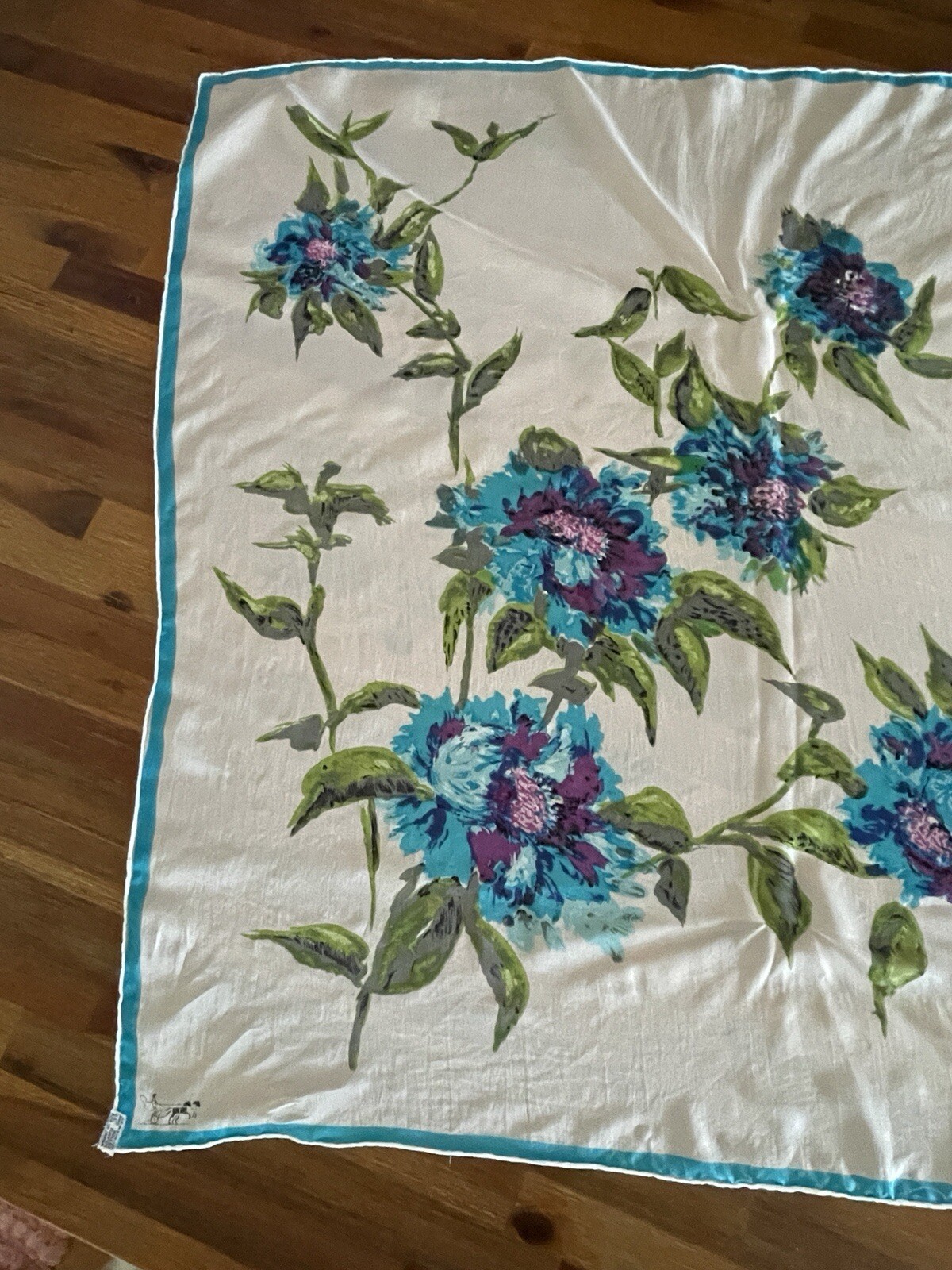 как выглядит Vintage 1950s Scarf 100 Rayon Hand Rolled Japan Blue Flowers 30"x30" READ фото