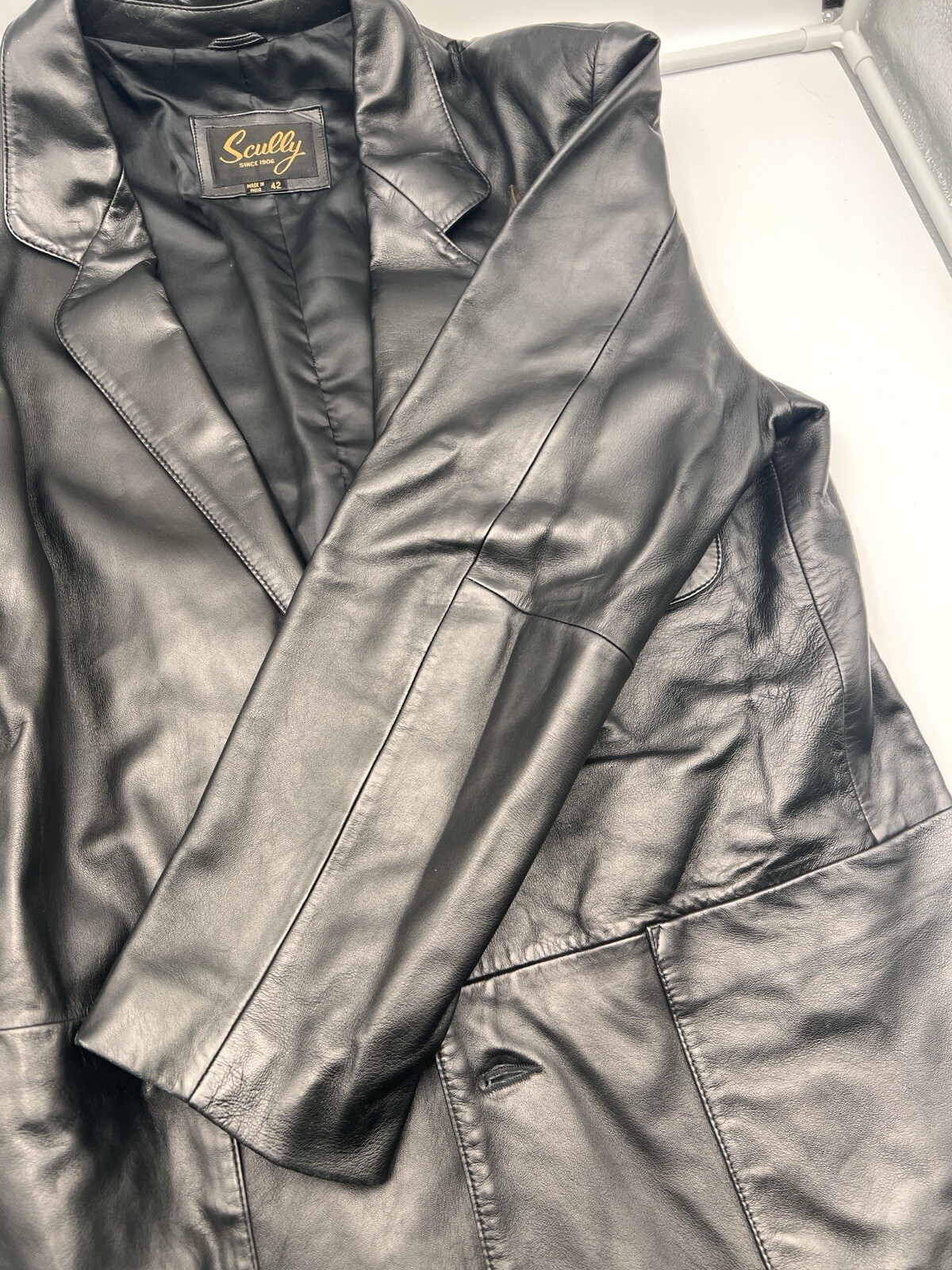 Vintage Men's Scully Leather Western Blazer 2-Button Jacket Black Size 42 NICE