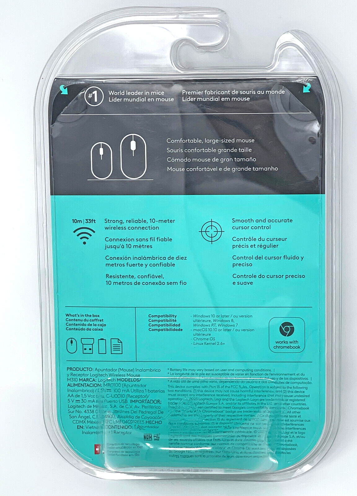 Logitech M310 Large Size Wireless Mouse with Receiver 910-004277 New Unopened