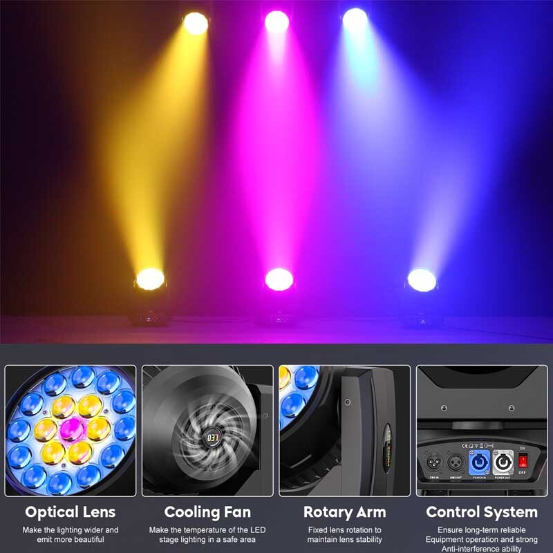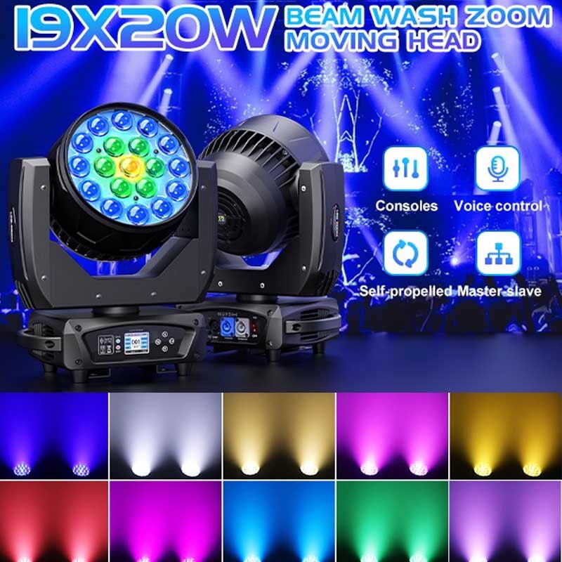 19x20W Moving Head Lights RGBW 4-in-1 LED Stage Light with Zoom Beam Wash Effect