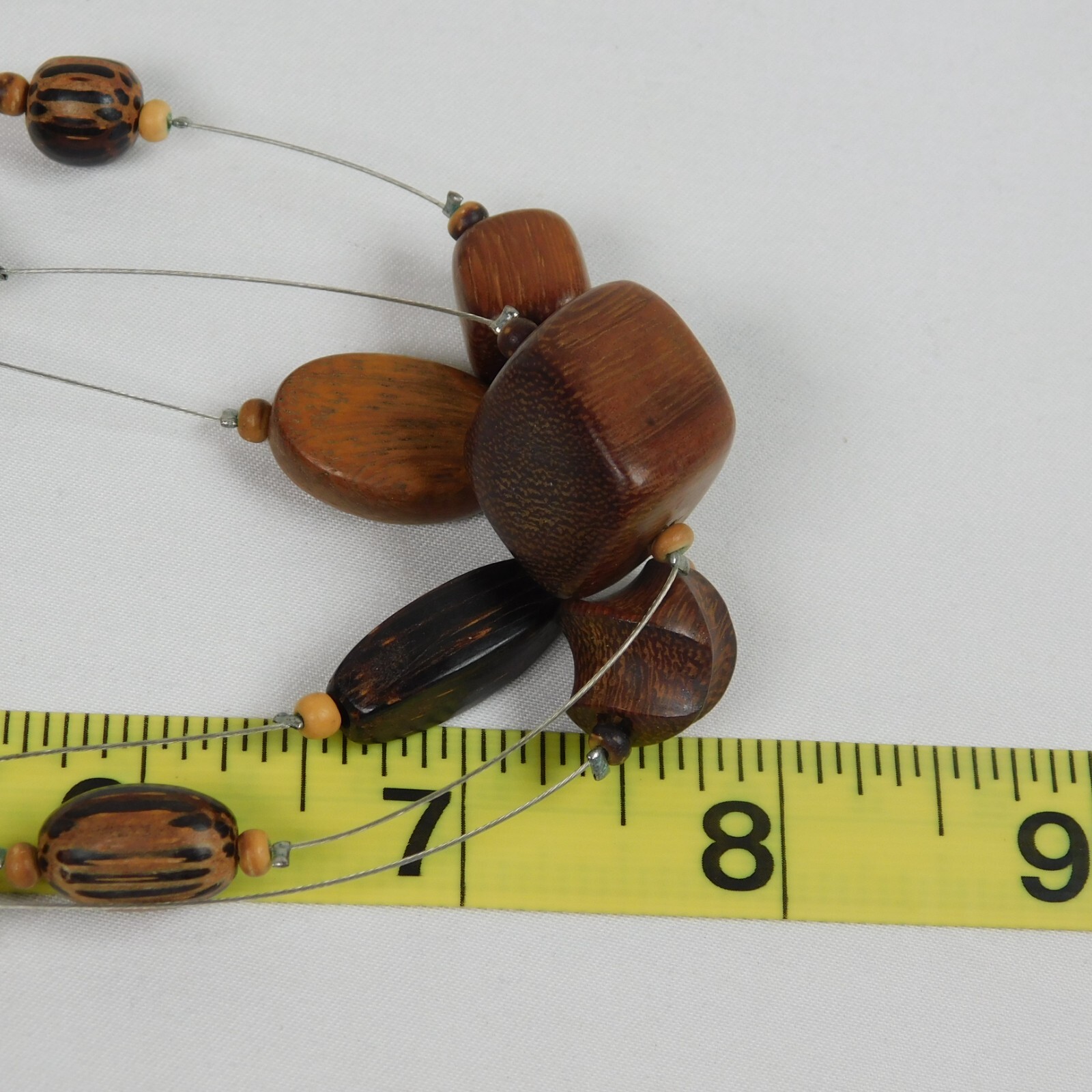 как выглядит Chunky Wood Beaded 3 Strand Necklace Earring Set Handmade Fashion Jewelry 16" Lg фото