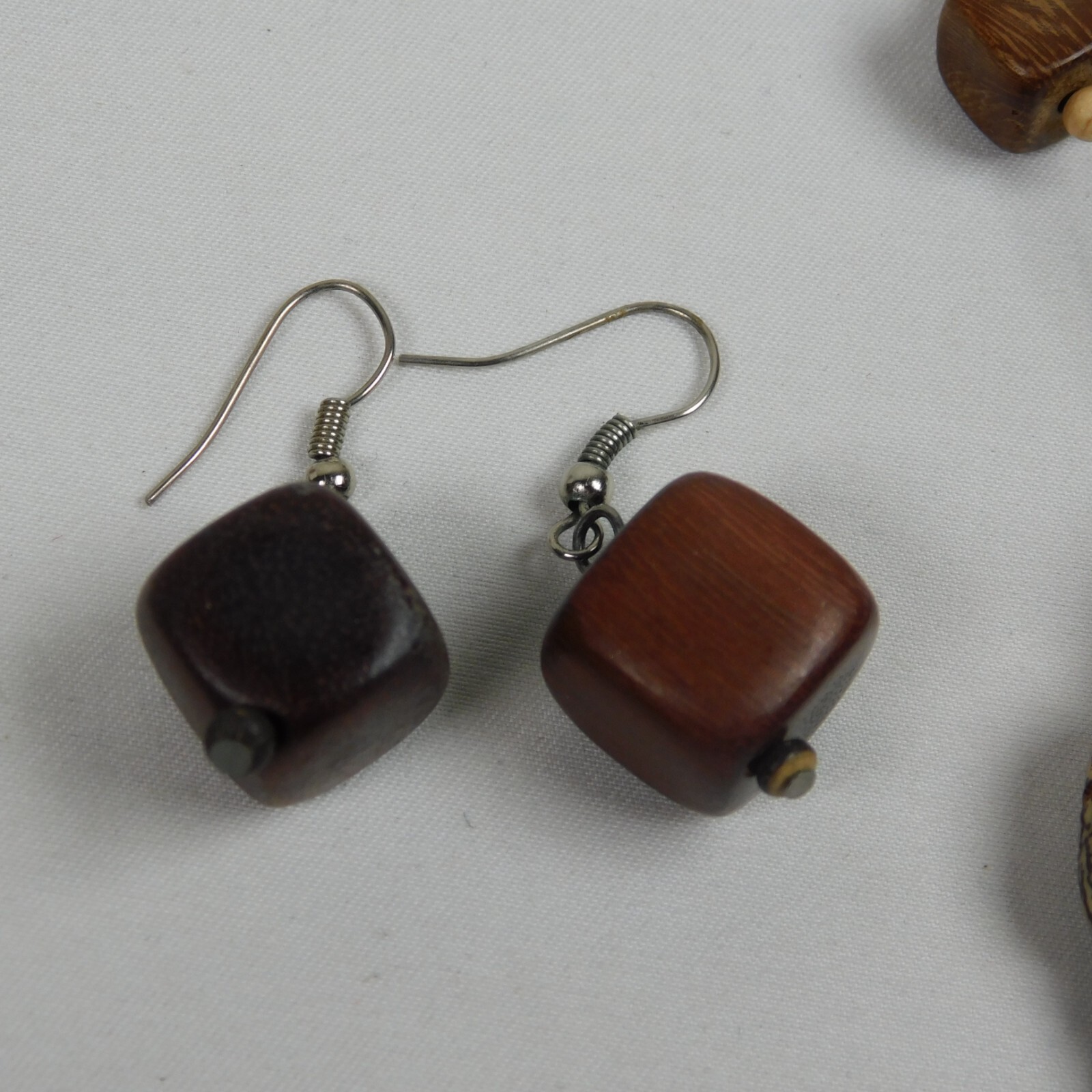 Chunky Wood Beaded 3 Strand Necklace Earring Set Handmade Fashion Jewelry 16 Lg