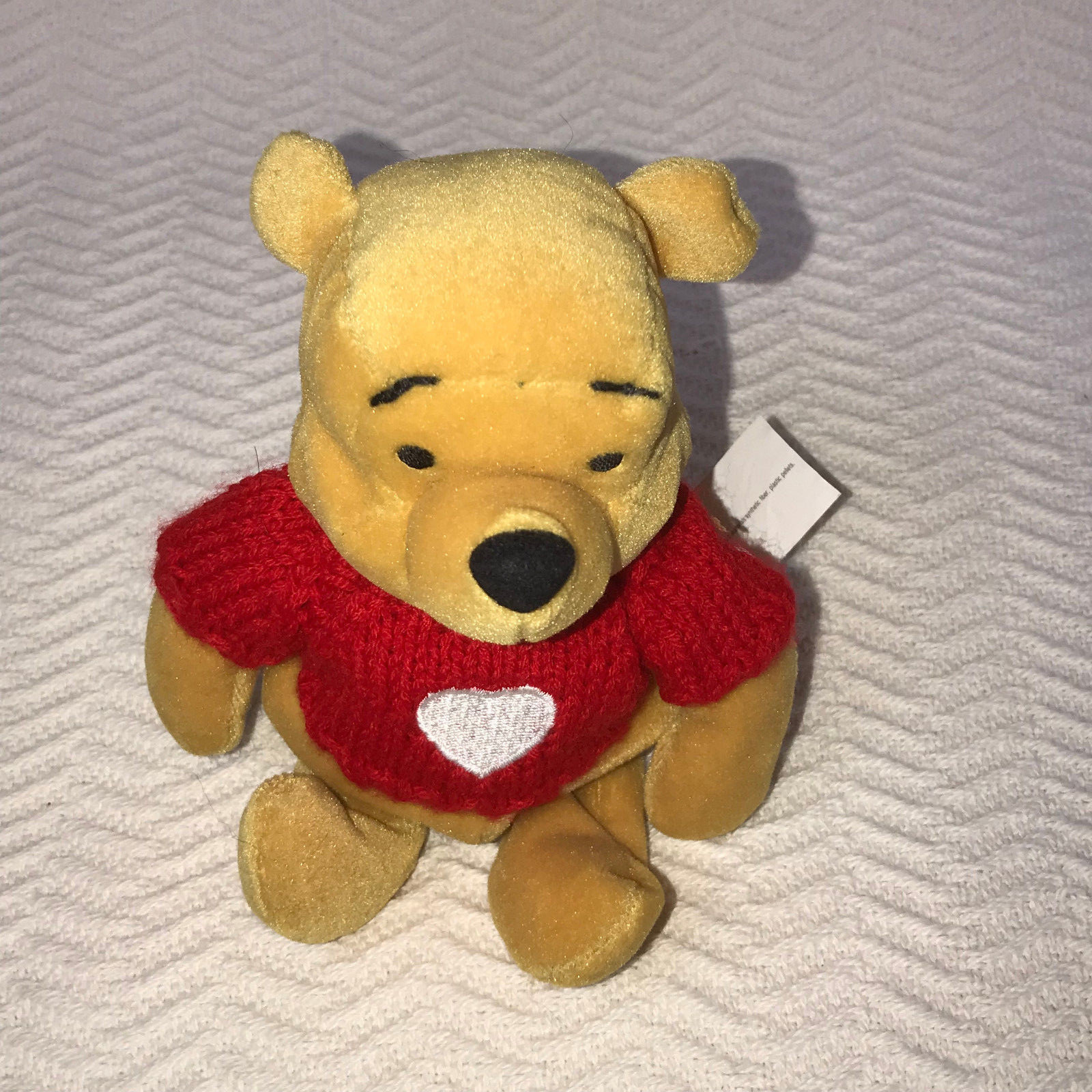 как выглядит Winnie The Pooh in Red Heart Sweater 7" Plush Bean Stuffed Animal Walt Disney Co фото