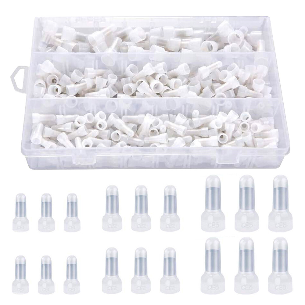 350Pcs Closed End Crimp Cap Copper Core Nylon Terminal Wire Connectors 22-10 AWG
