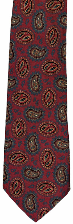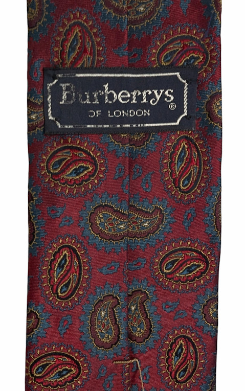 BURBERRY Silk Tie vtg. dark red w/drop paisley shapes hi sheen-EUC