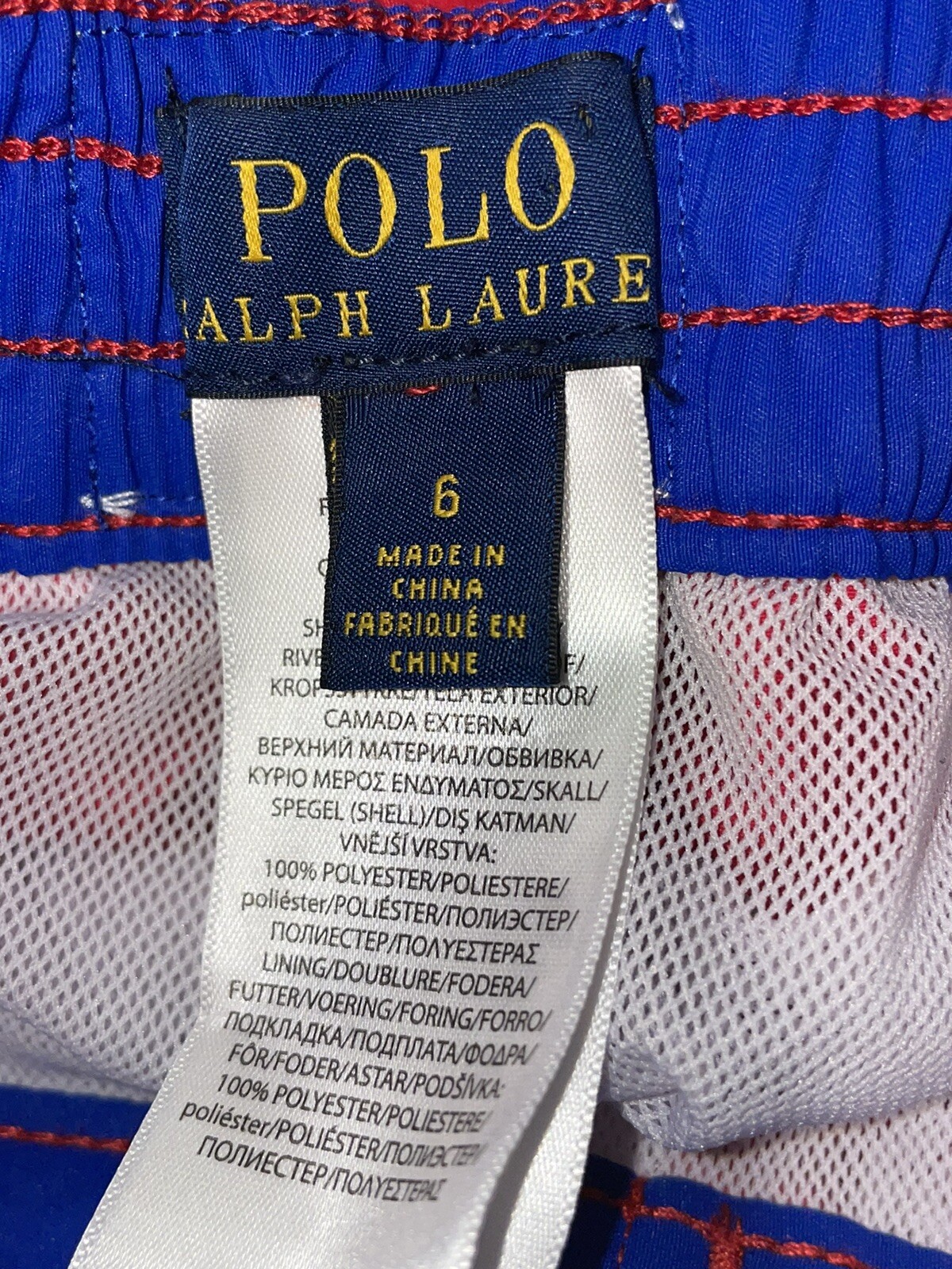 Boys Kids Polo Ralph Lauren Red Blue Big Pony Bathing Suit Swim Trunks Sz. 6 EUC