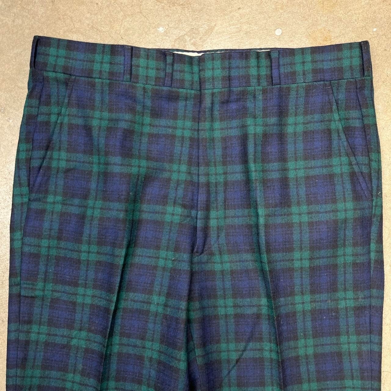 как выглядит Vintage 60s Tartan Wool pants Green blue plaid trousers talon zipper фото