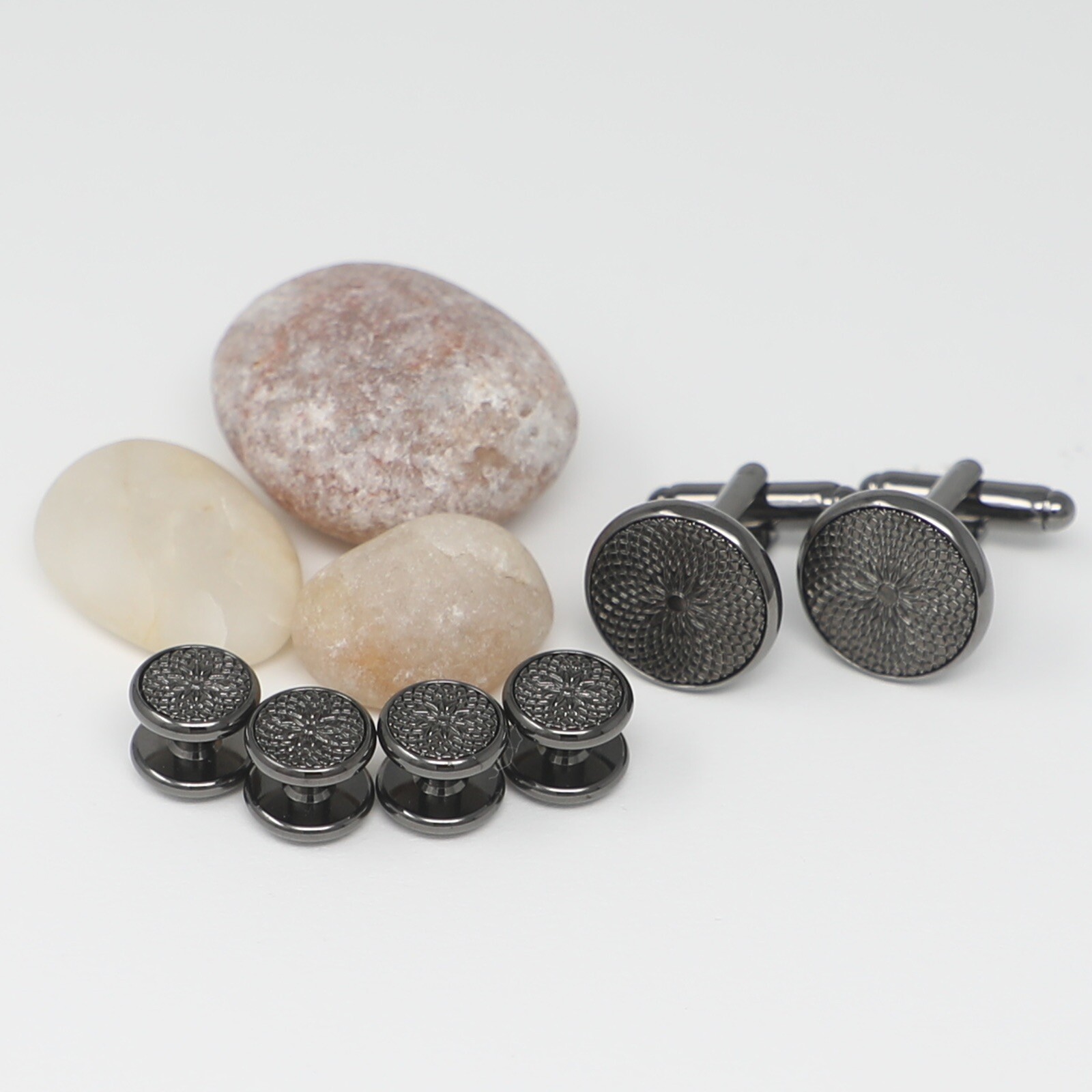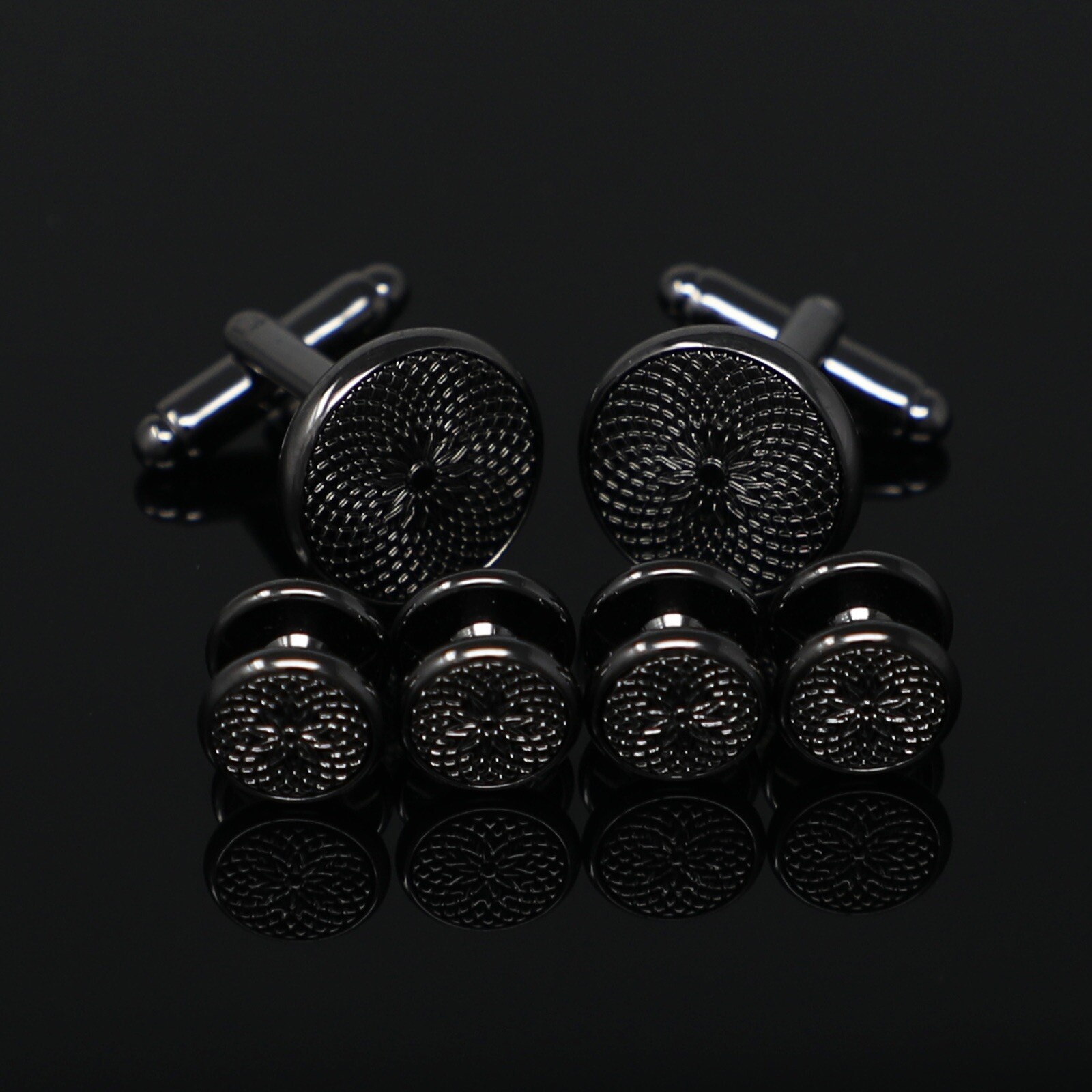 Gunmetal Tone Round Sunburst Cufflinks And Dress Shirt Studs Set Men Gift