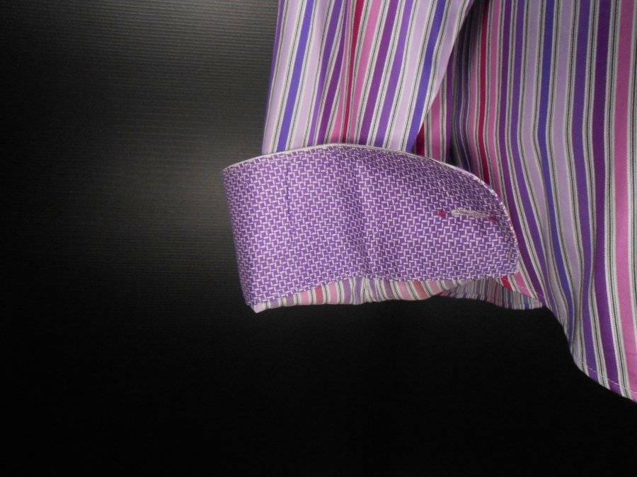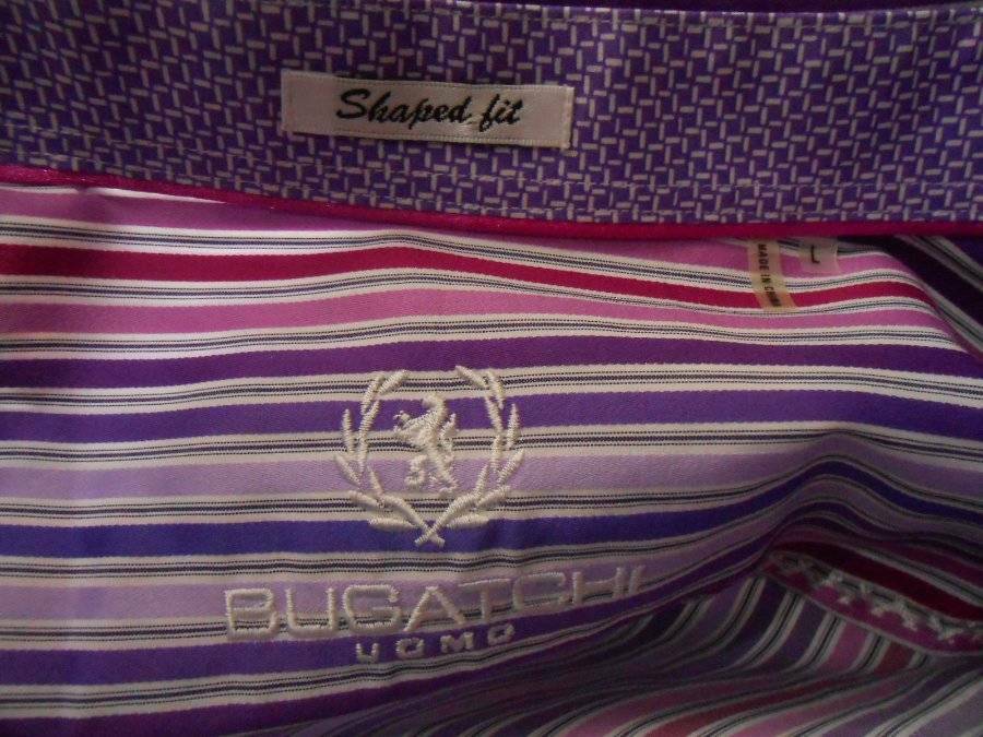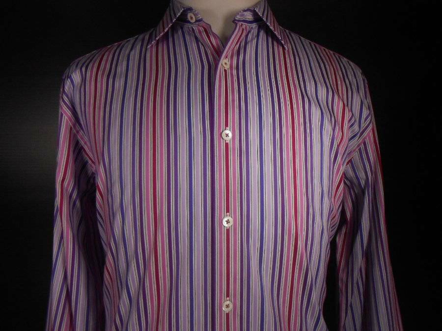 как выглядит Beautiful Mens Large Bugatchi UOMO Purple Striped Long Sleeve Button Shirt GUC фото