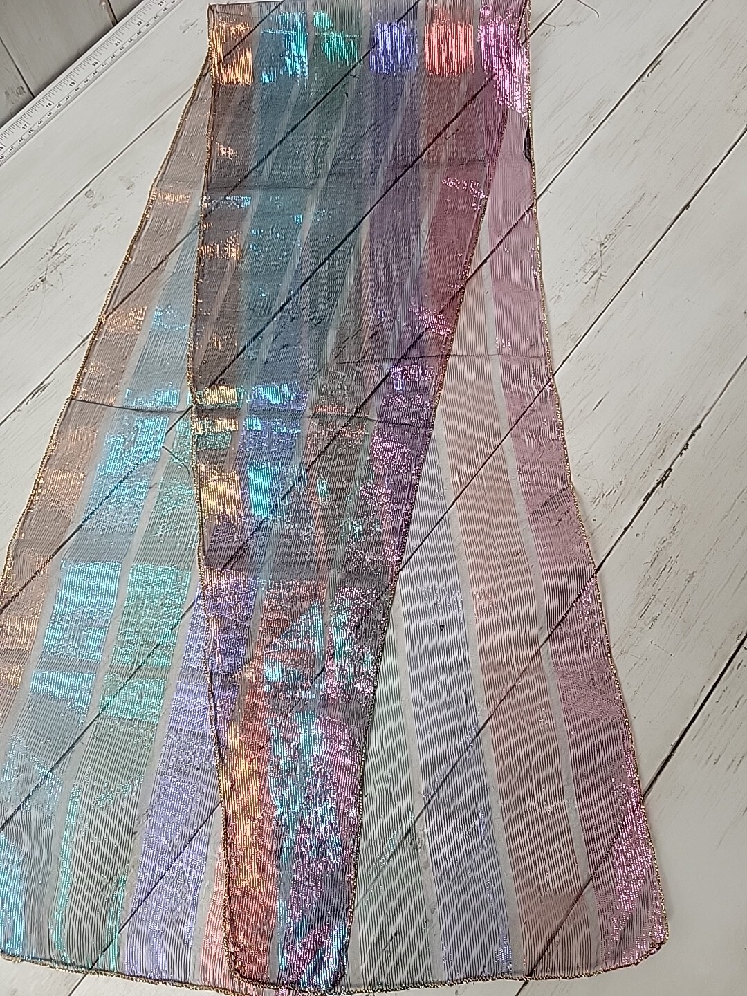 Vintage Womens Rainbow Shiny Sheer Scarf 52.5 x 9.5