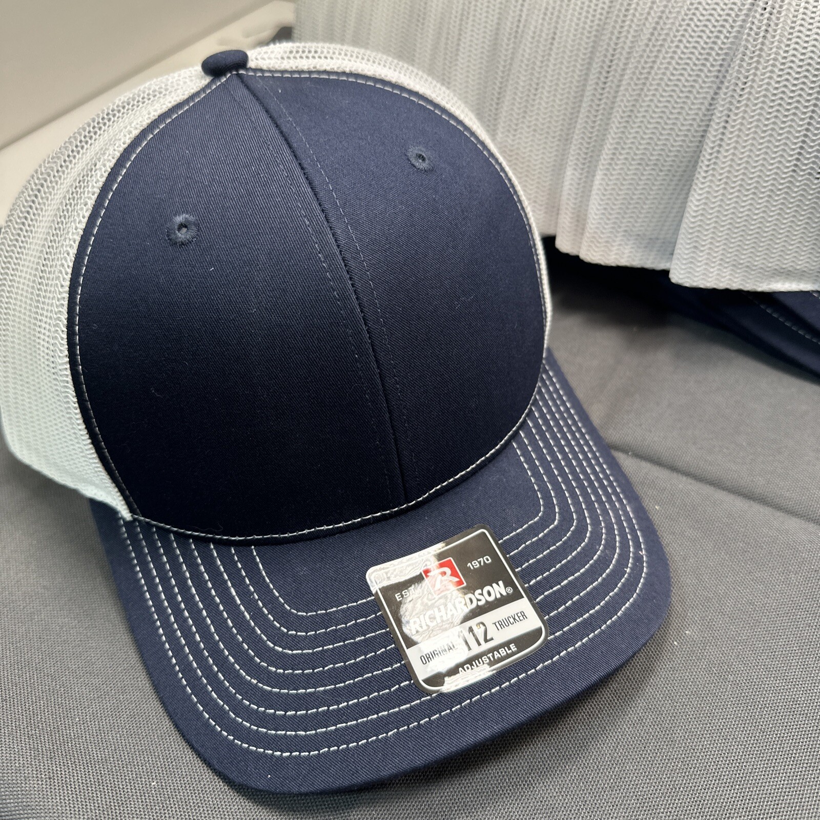 как выглядит Lot Of 12 Richardson 112 6 Panel Mesh Trucker Hat Navy Blue And White фото