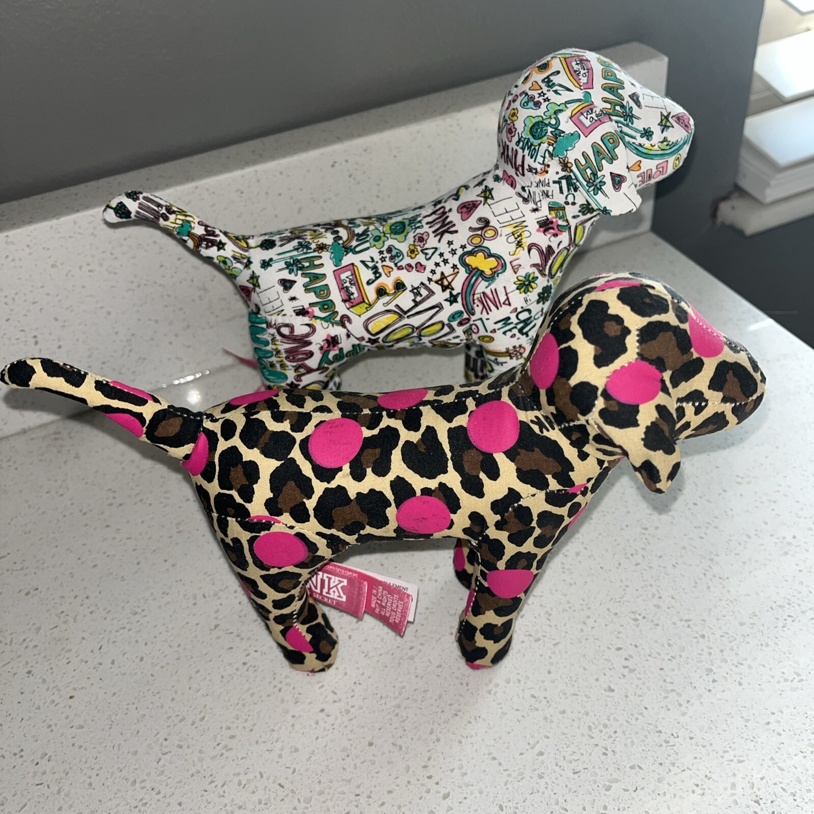 Victoria s Secret PINK Plush Dog Lot of 2 Cheetah and Graffiti Print