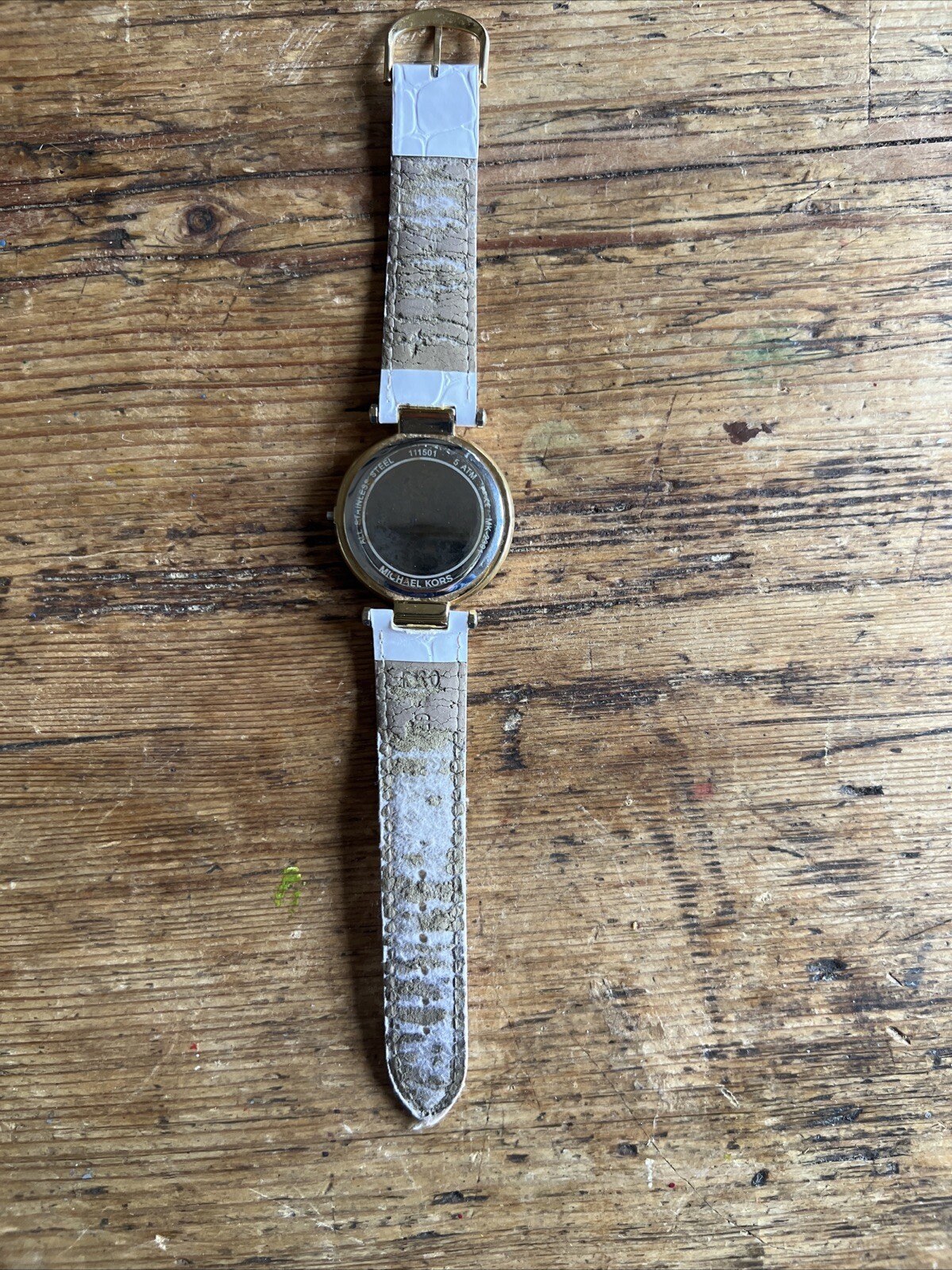 Michael Kors Women's Watch MK2391 Darci Quartz Gold Dial White Leather Band 39mm