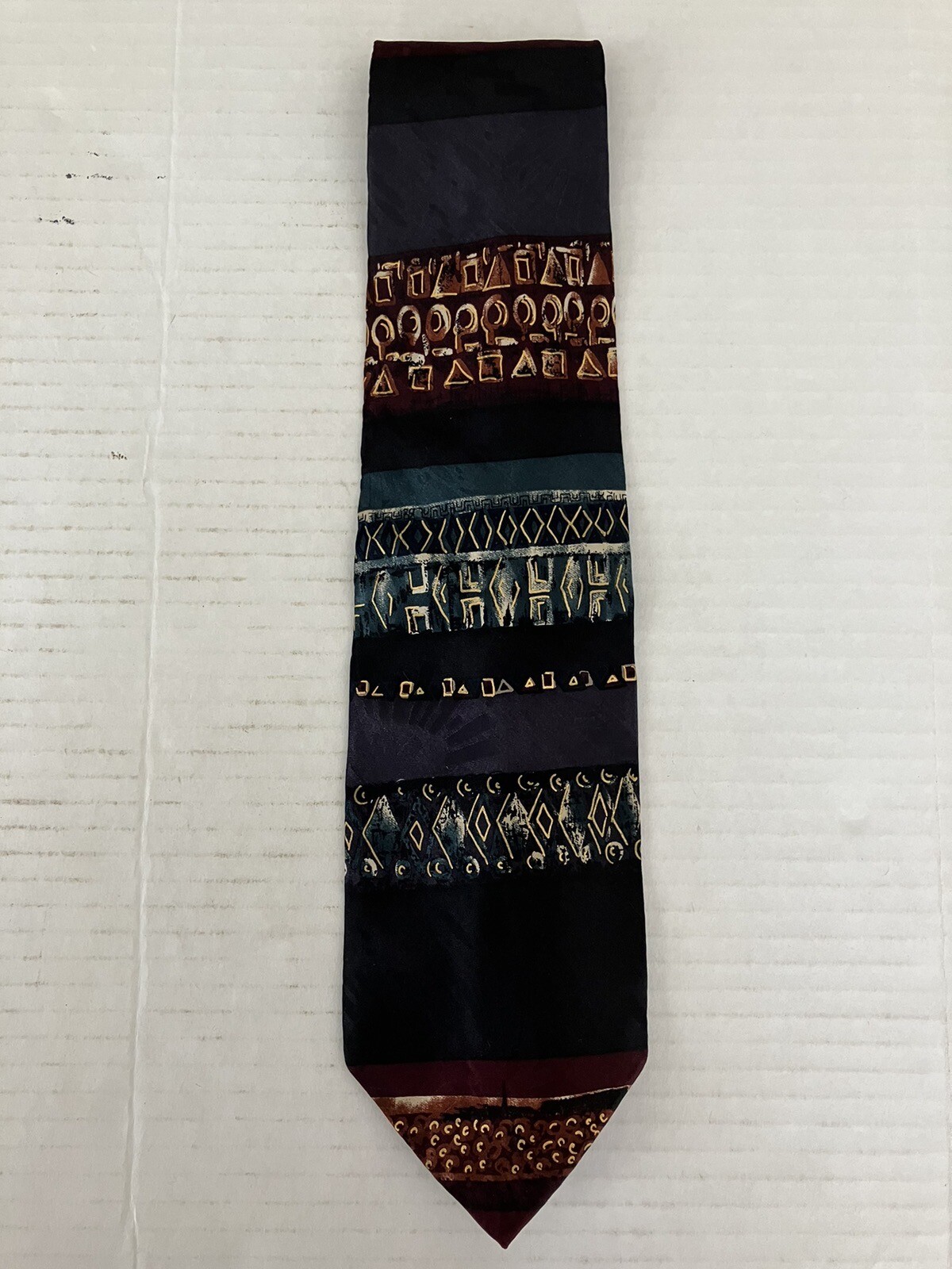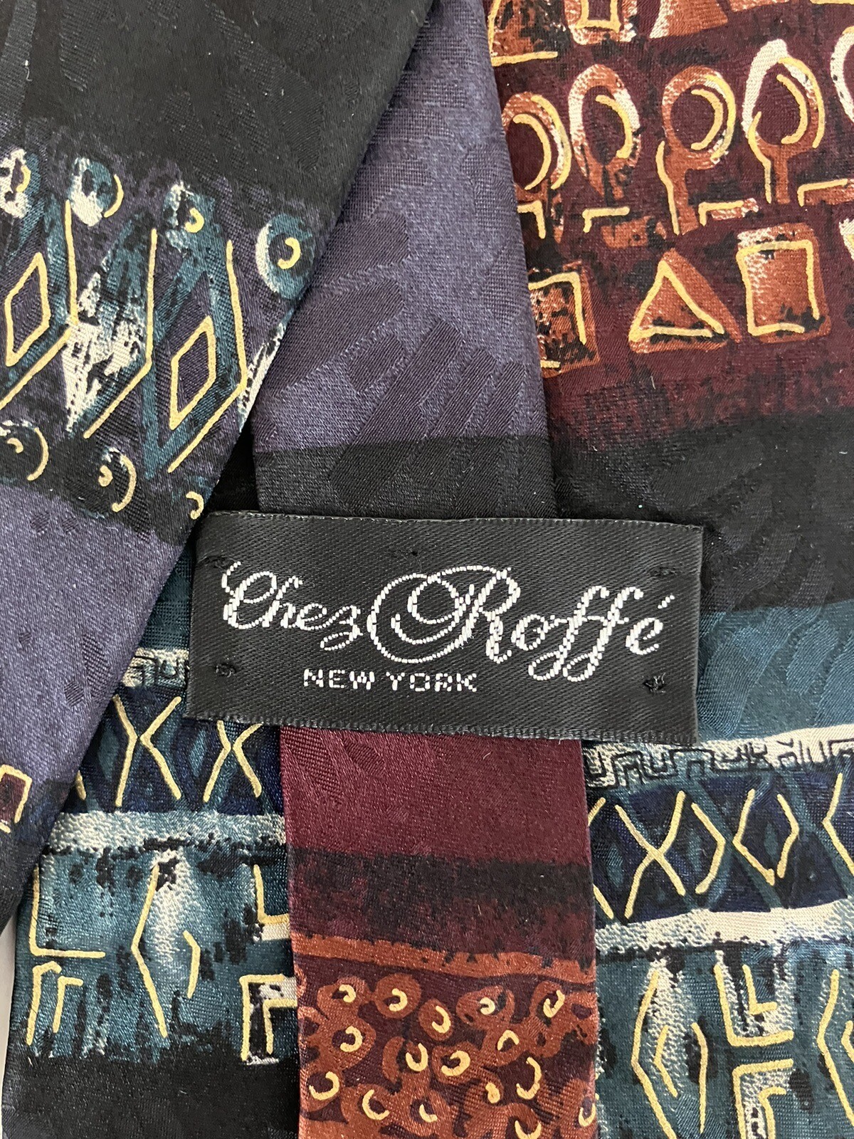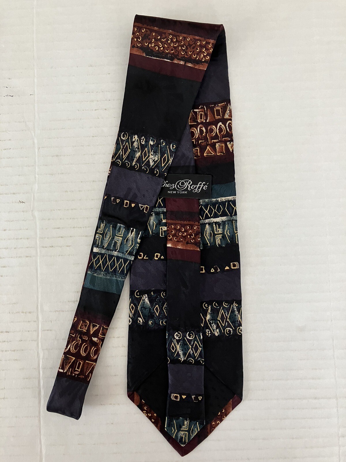 Chez Roffe Men's Necktie Tie Silk Multicolor Geometric Stripe Made in USA Wide