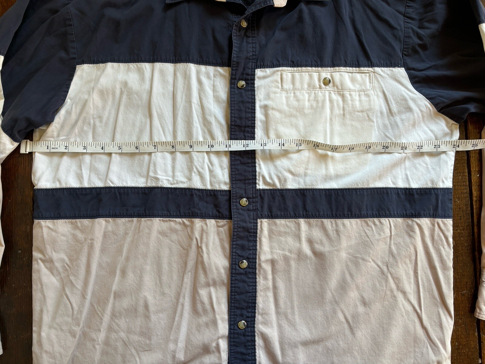 как выглядит Vintage Wrangler Snap Color Block Long Sleeve Pearl Snap Western Shirt Mens L фото