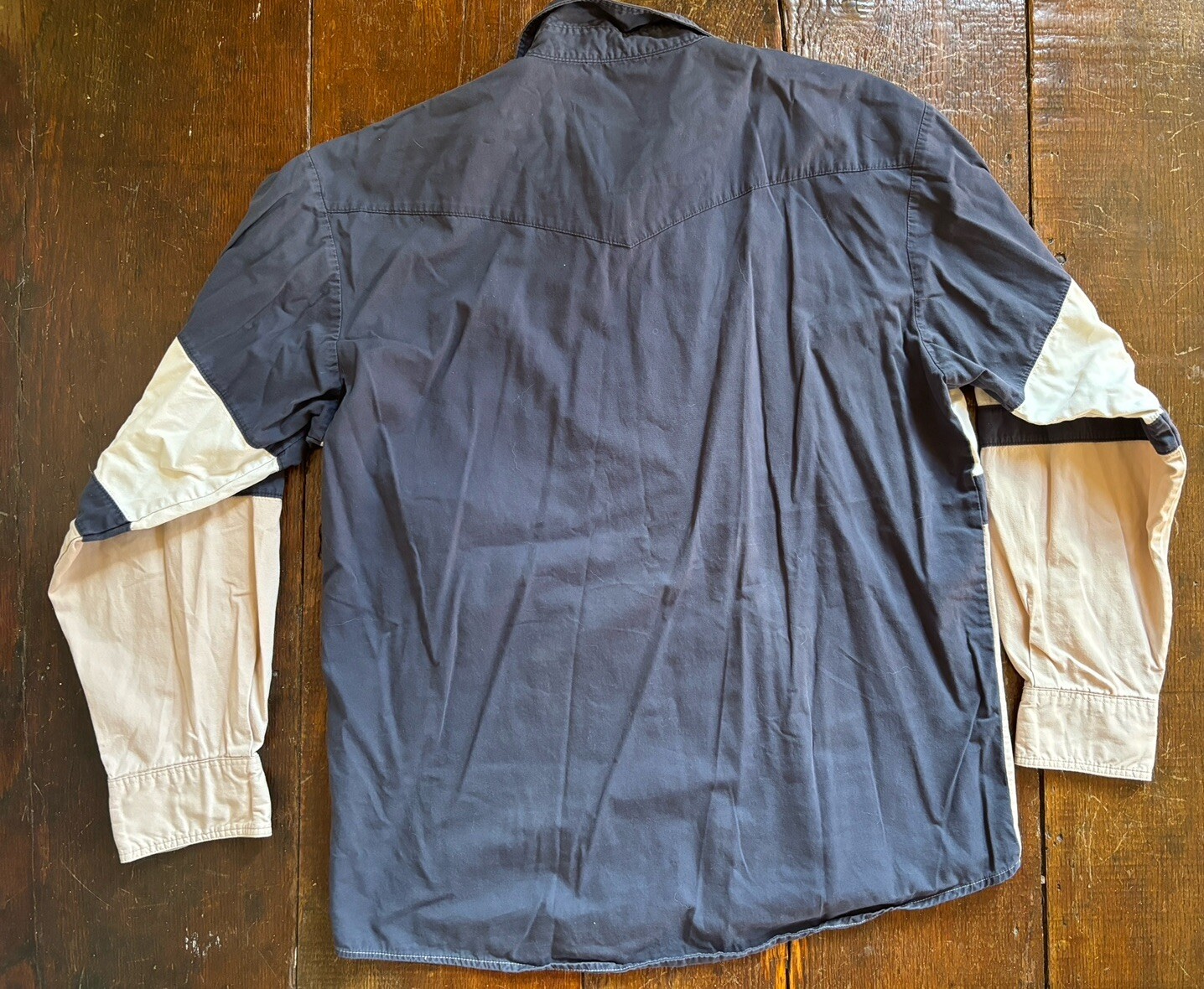 Vintage Wrangler Snap Color Block Long Sleeve Pearl Snap Western Shirt Mens L