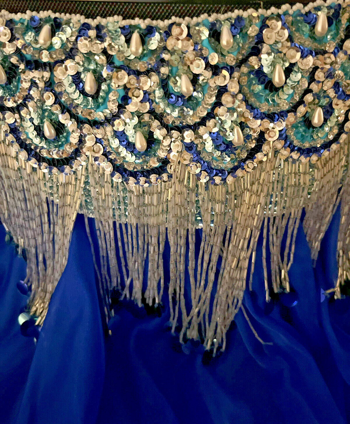 Professional Blue Small Belly Dance Costume w/ Veil, Flutter Skirt, Arm Bands