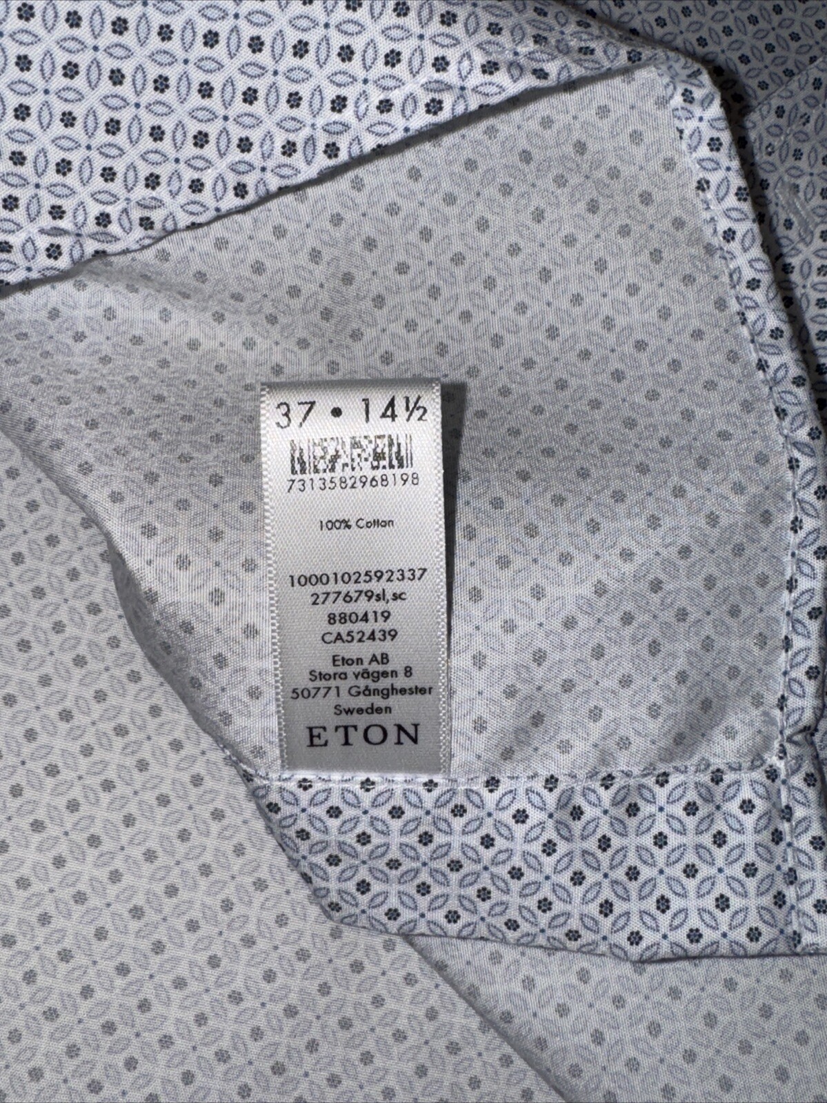 как выглядит ETON MENS BLUE MICRO PATTERN SLIM FIT PREMIUM COTTON DRESS SHIRT SZ 14.5/34 270 фото