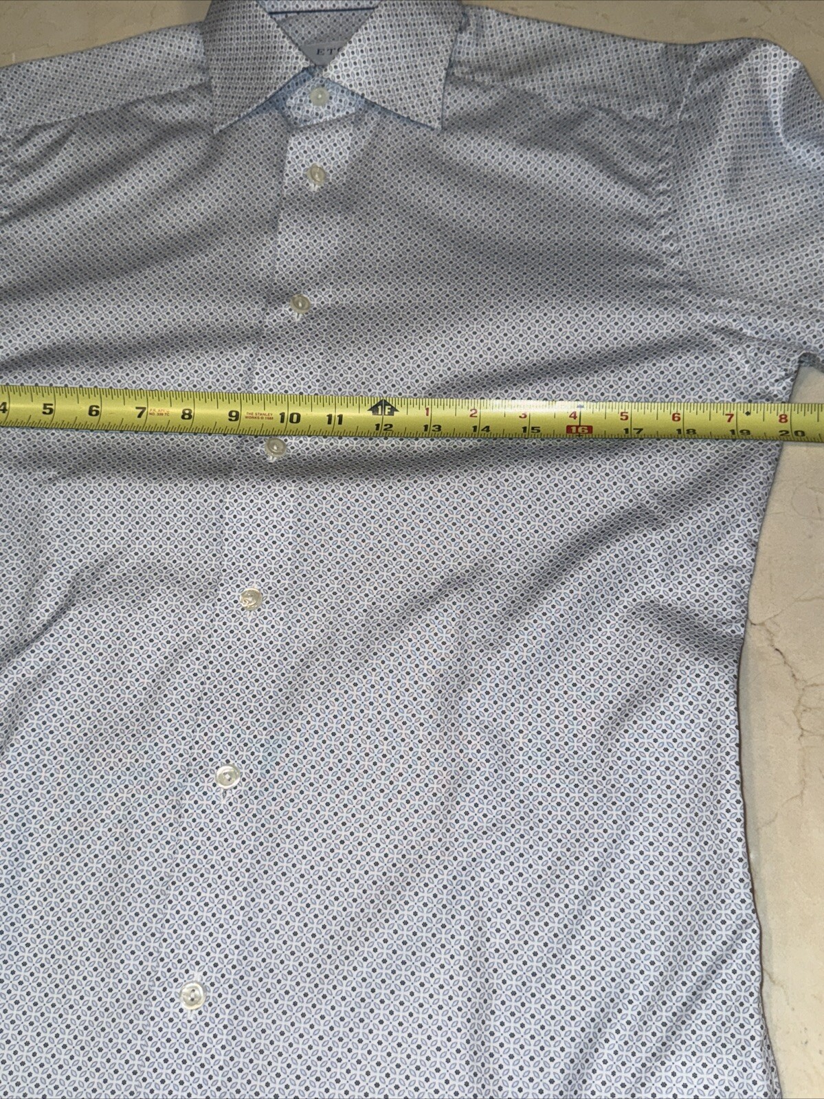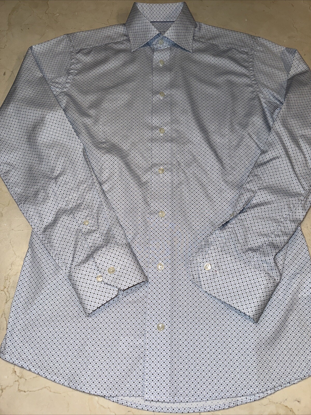 ETON MENS BLUE MICRO PATTERN SLIM FIT PREMIUM COTTON DRESS SHIRT SZ 14.5/34 270