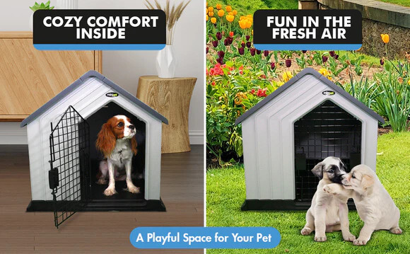 MiraPet Durable Waterproof Plastic Dog House, Indoor Outdoor, Small